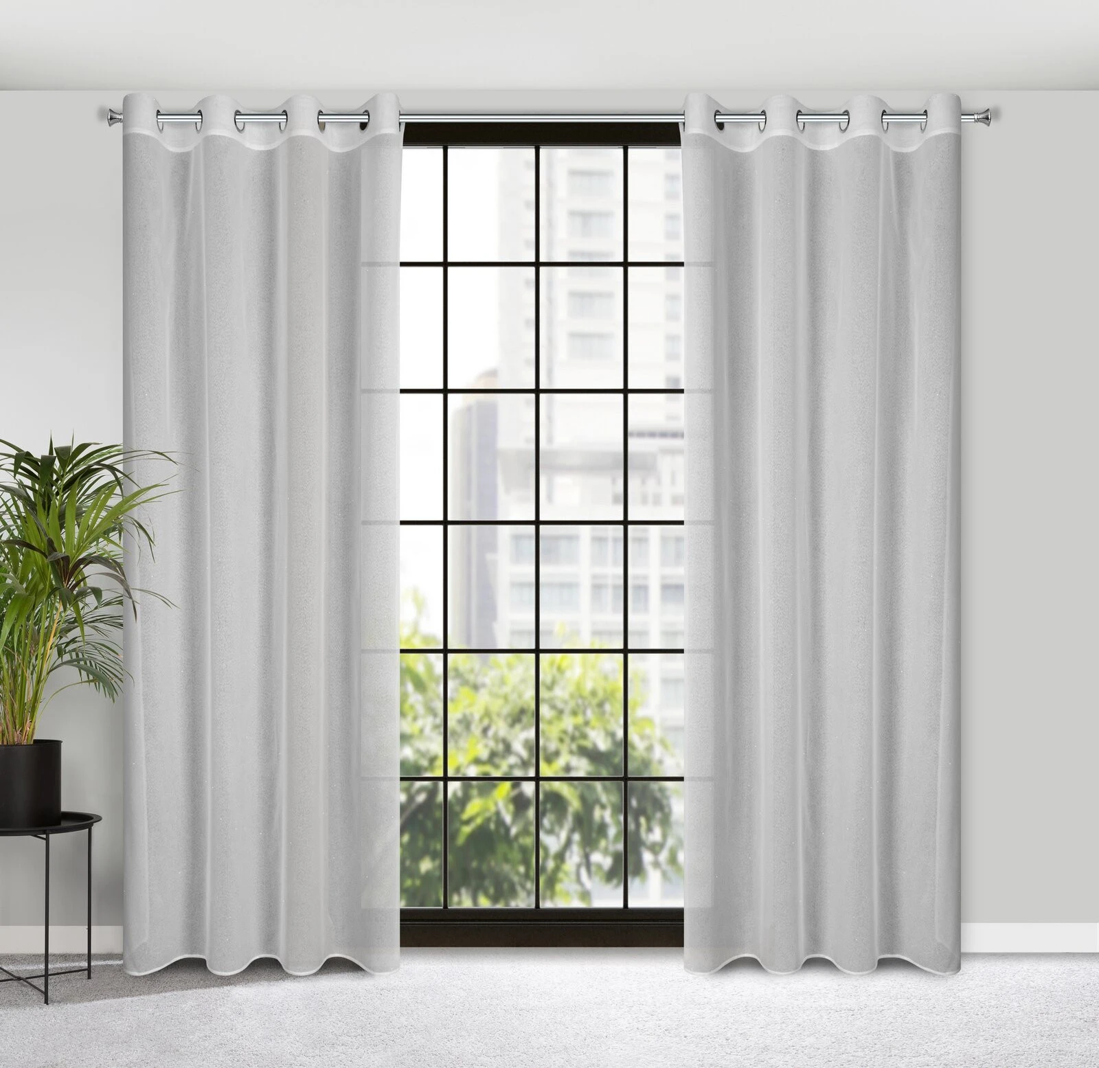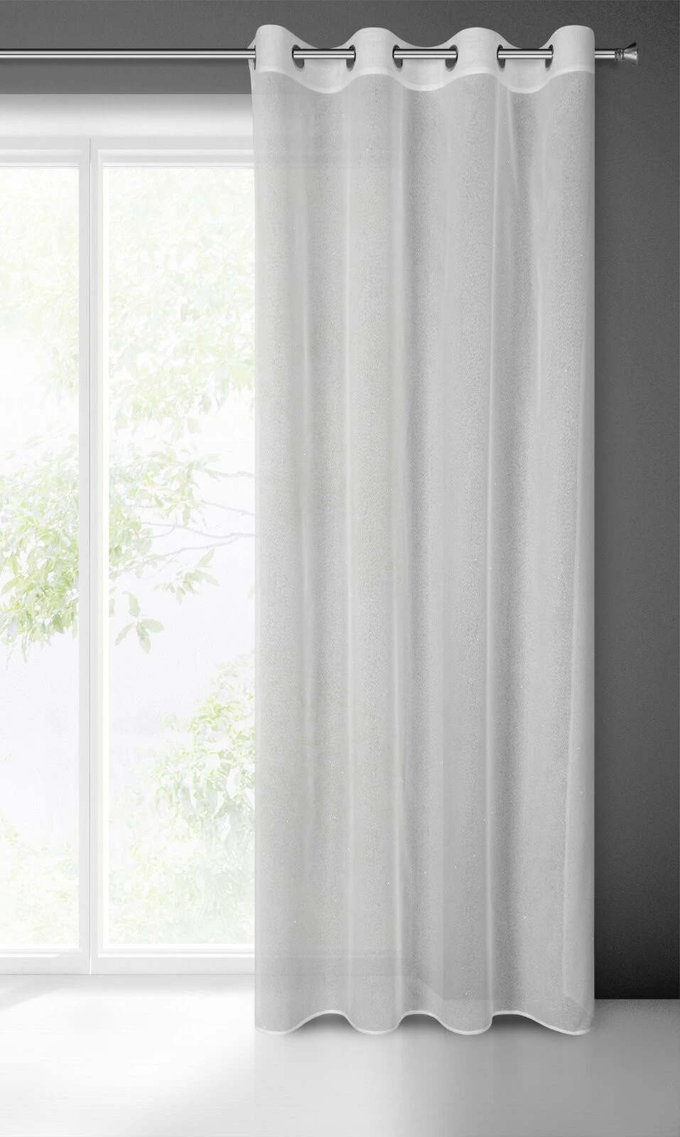 Firana o strukturze drobnej siatki zdobiona delikatnymi cekinami szerokość: 140 cm, długość: 250 cm, kolor: biały, Skład: 100% poliester