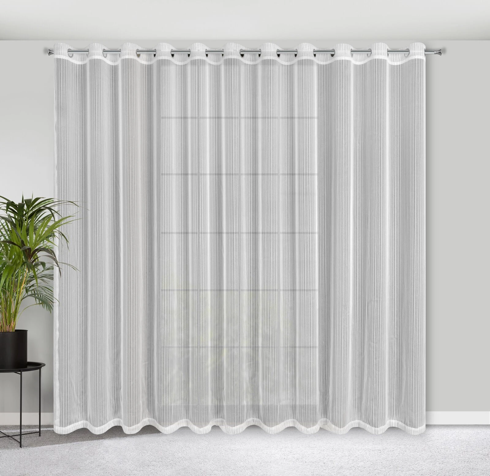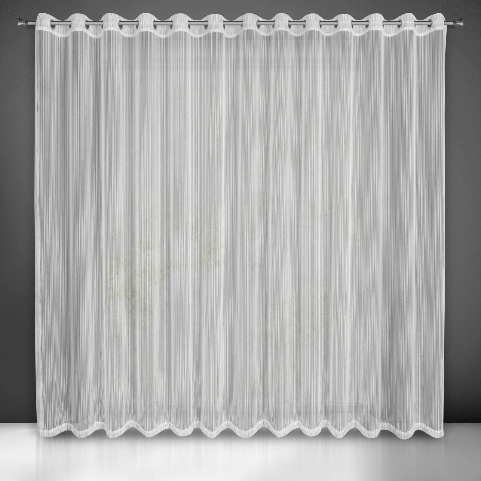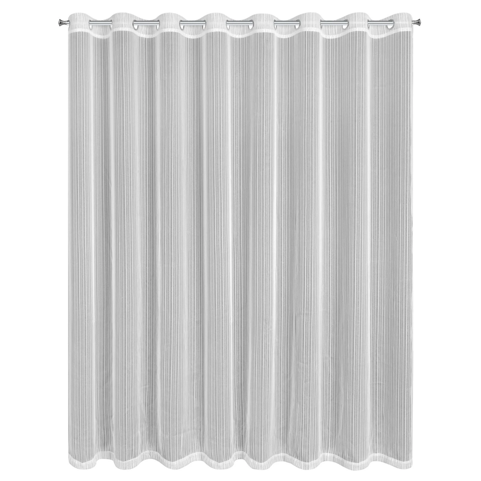 - Firana gotowa z błyszczącą nicią szerokość: 300 cm, długość: 250 cm, kolor: biały, Gramatura: 55 GSM, Skład: 100% poliester