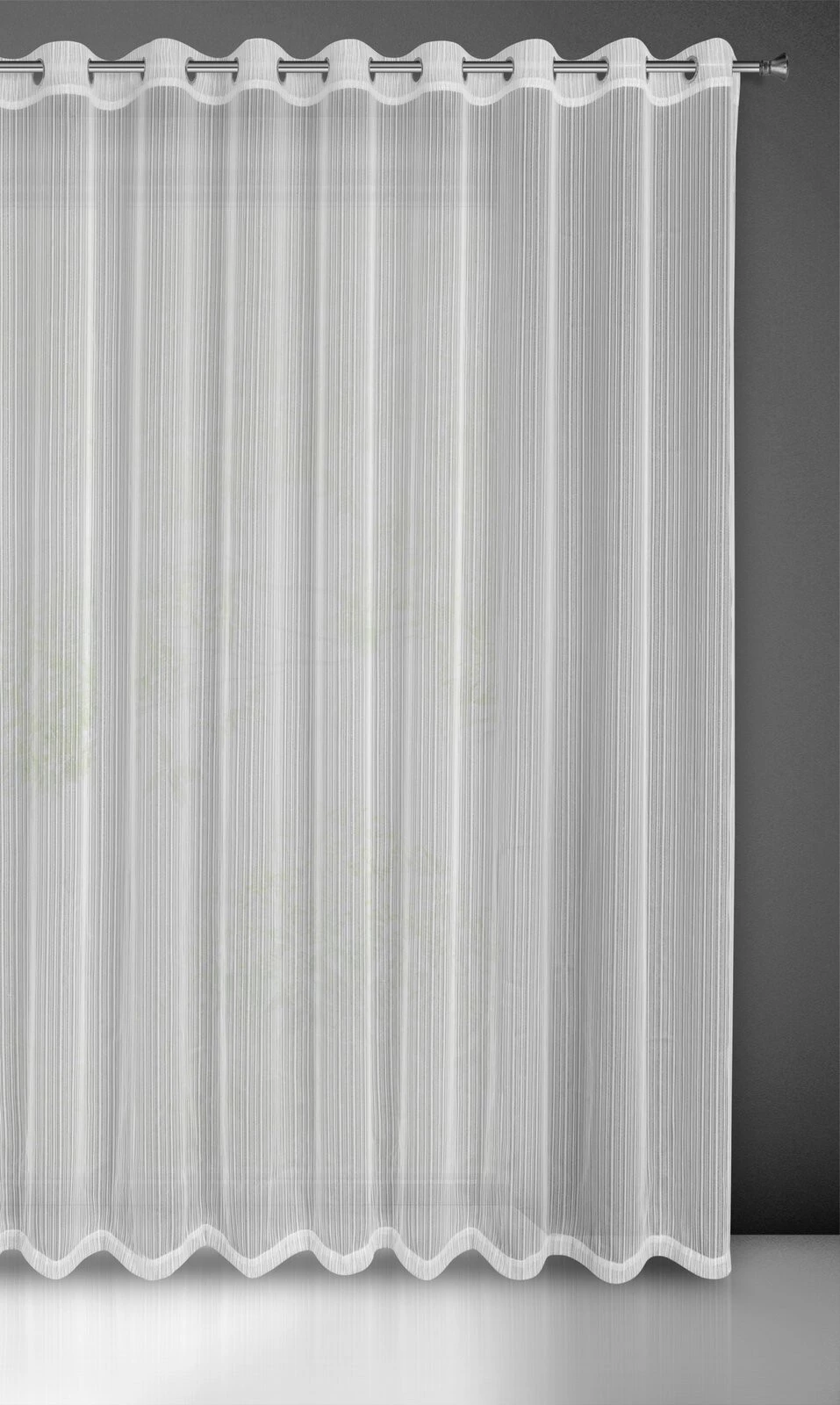 Firana gotowa z błyszczącą nicią szerokość: 300 cm, długość: 250 cm, kolor: biały, Gramatura: 55 GSM, Skład: 100% poliester