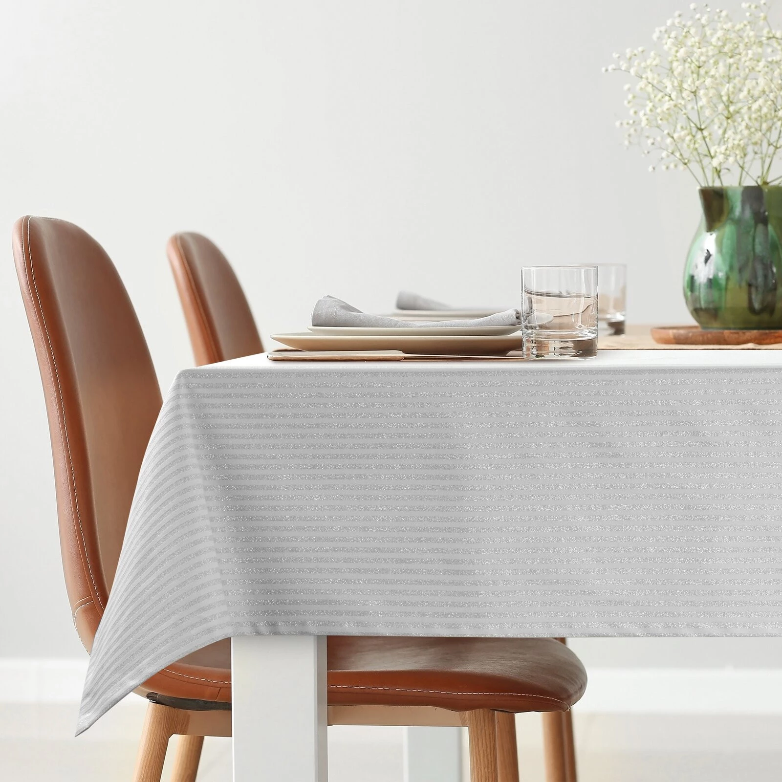 - Obrus błyszczący z motywem świątecznym szerokość: 35 cm, długość: 180 cm, kolor: srebrny, Skład: 94% poliester, 6% nić metaliczna
