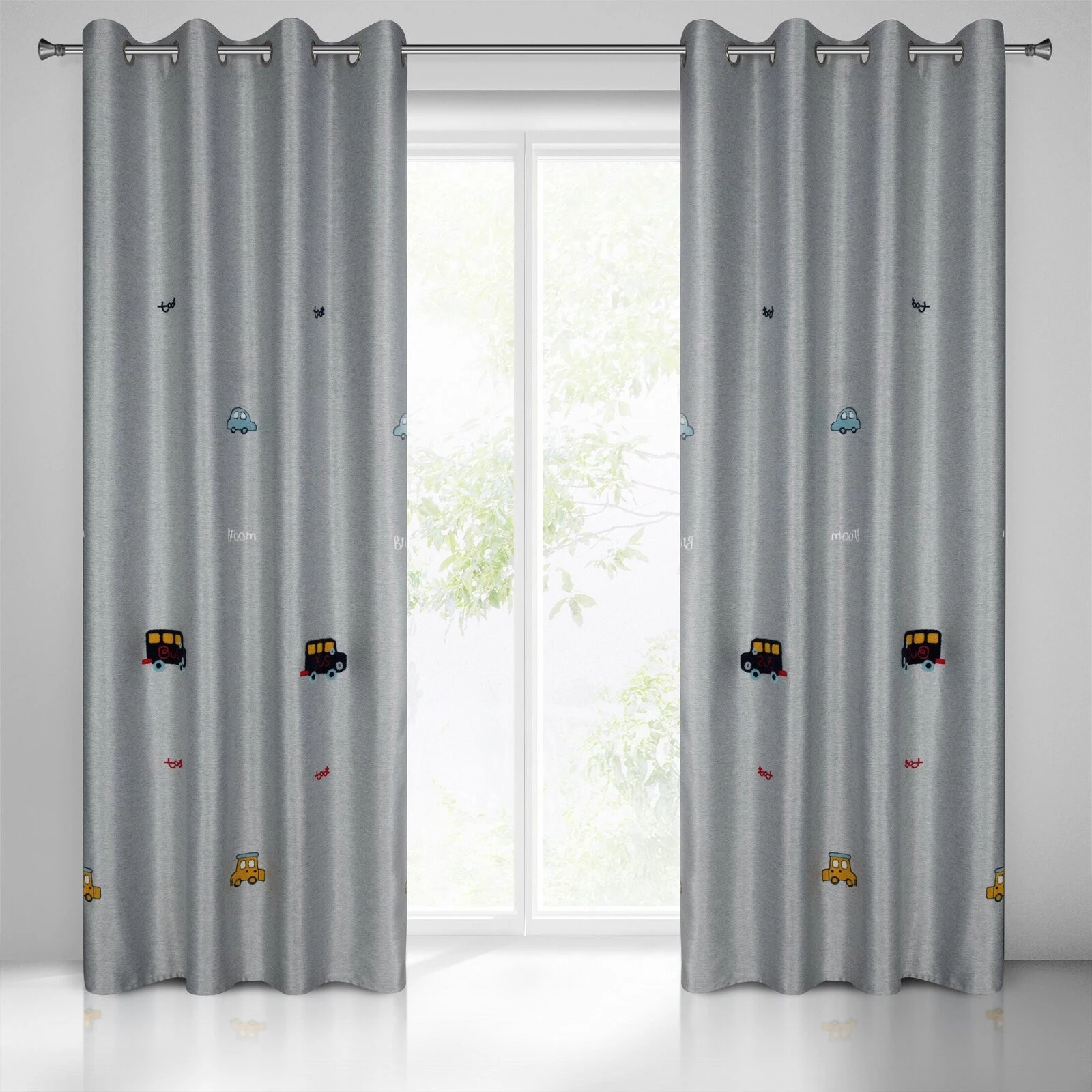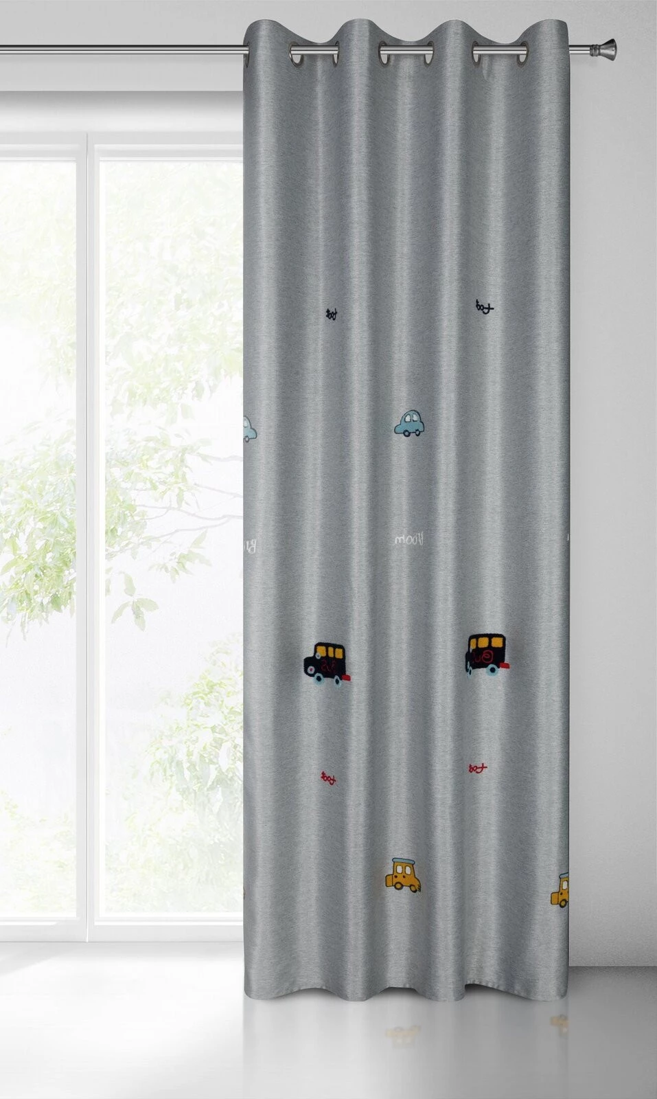 Zasłona gotowa zdobiona haftem w dziecięcy wzór szerokość: 140 cm, długość: 250 cm, kolor: srebrny, Gramatura: 240 GSM, Skład: 100% poliester