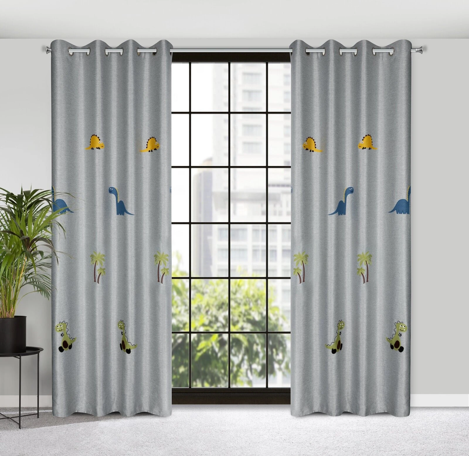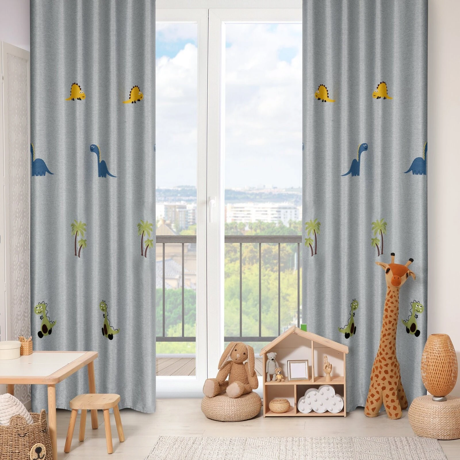 Zasłona gotowa zdobiona haftem w dziecięcy wzór szerokość: 140 cm, długość: 250 cm, kolor: srebrny, Skład: 100% poliester