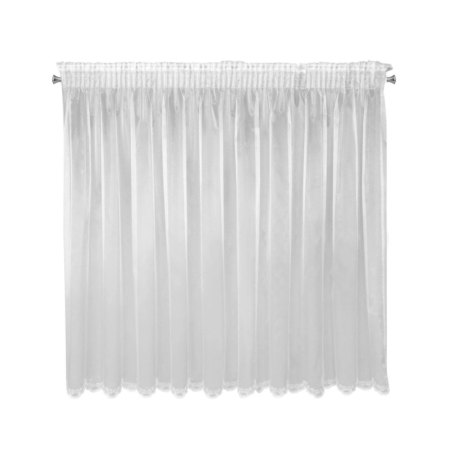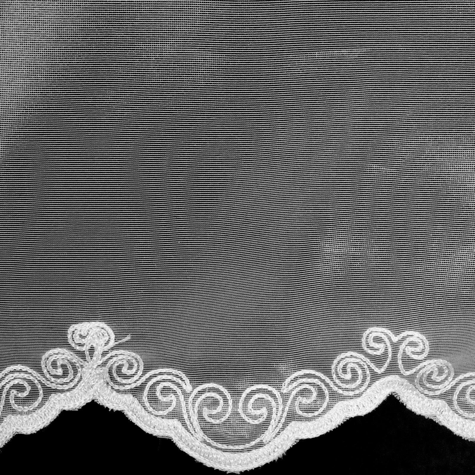 - Firana gotowa, jednokolorowa zdobiona haftem szerokość: 300 cm, długość: 145 cm, kolor: biały, Gramatura: 70 GSM, Skład: 100% poliester