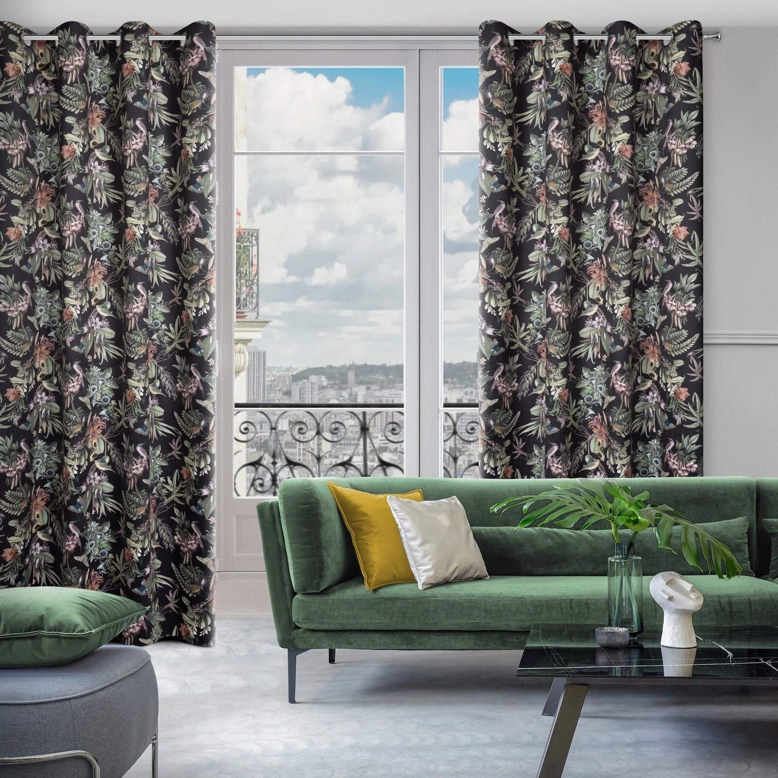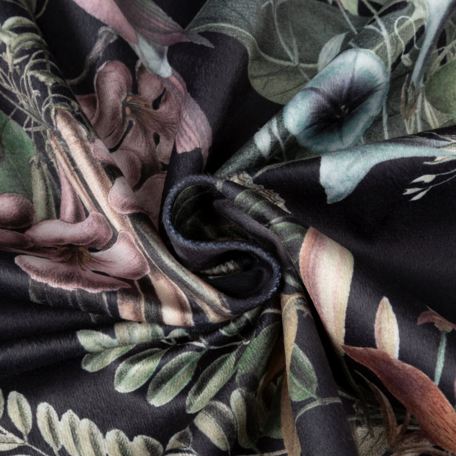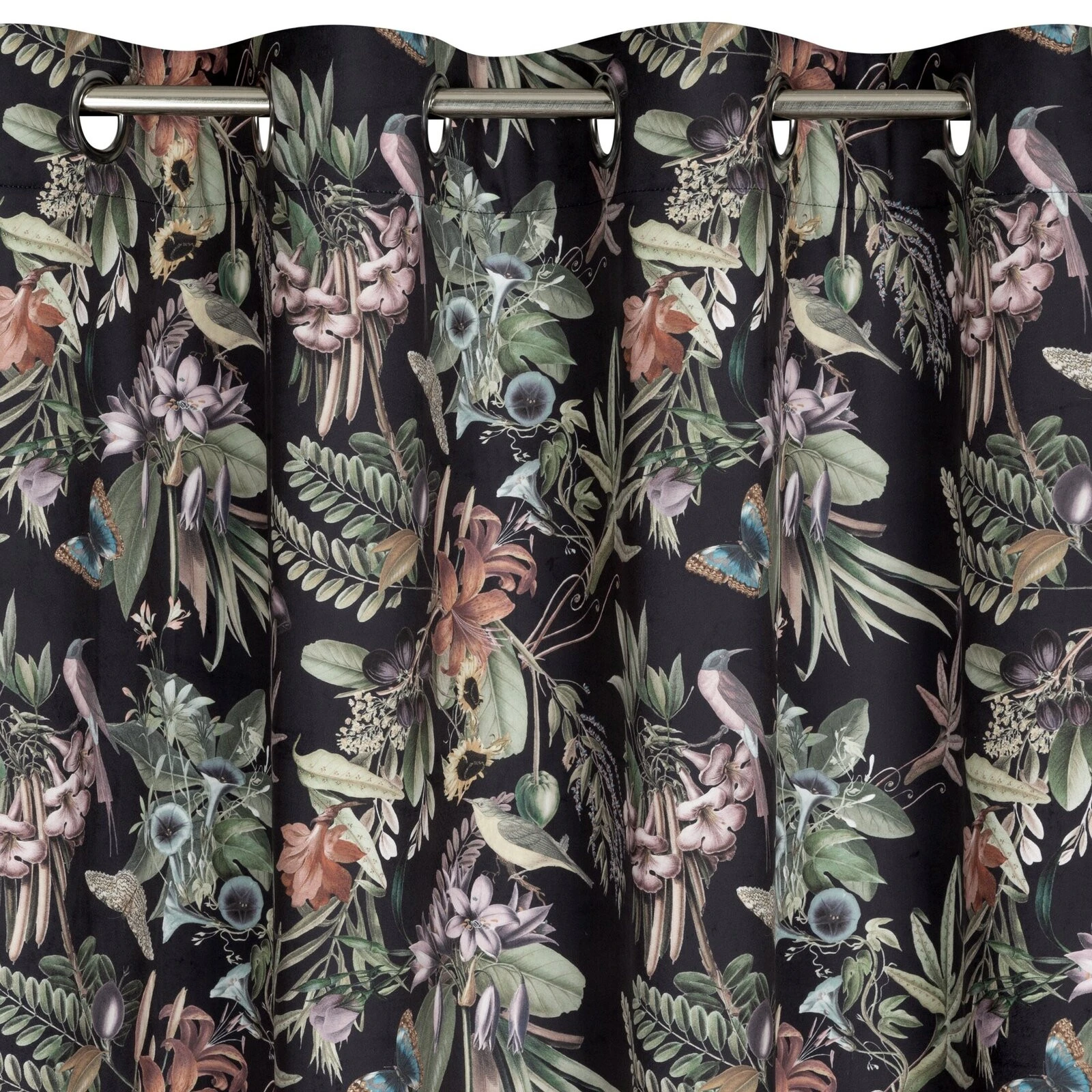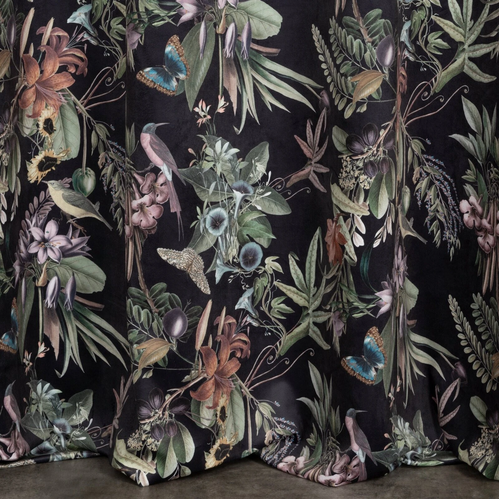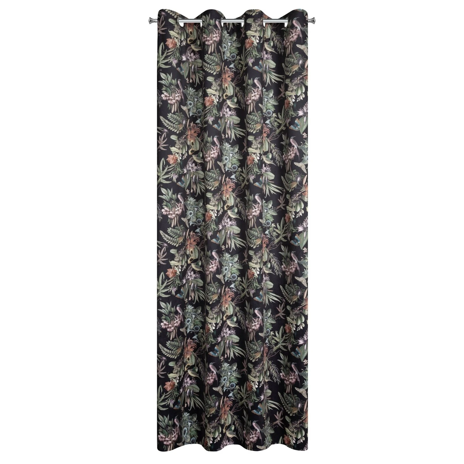 - Zasłona welwetowa z nadrukiem kwiatowym szerokość: 140 cm, długość: 250 cm, kolor: czarny, Gramatura: 200 GSM, Skład: 100% poliester
