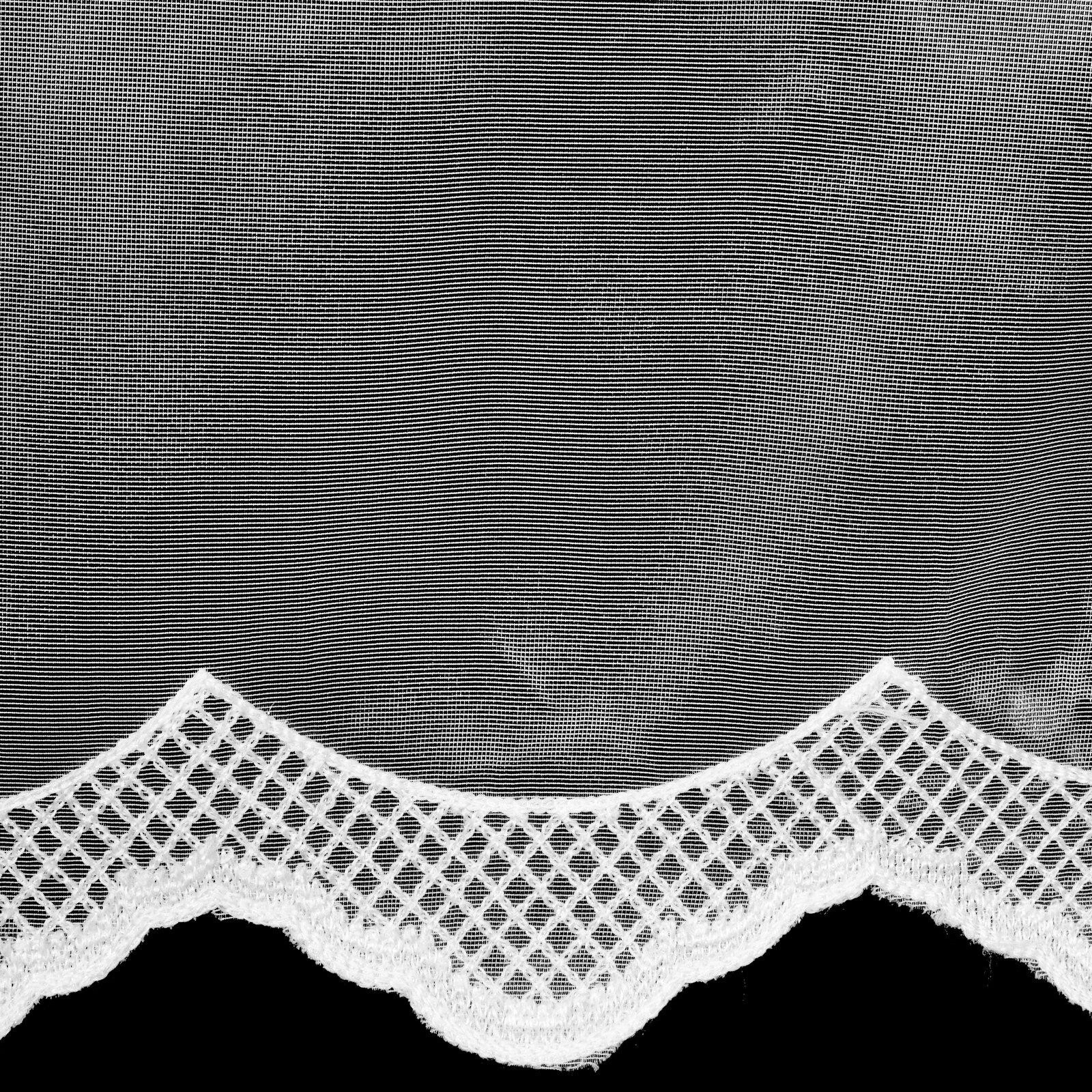 - Firana gotowa, jednokolorowa zdobiona haftem szerokość: 350 cm, długość: 145 cm, kolor: biały, Gramatura: 70 GSM, Skład: 100% poliester