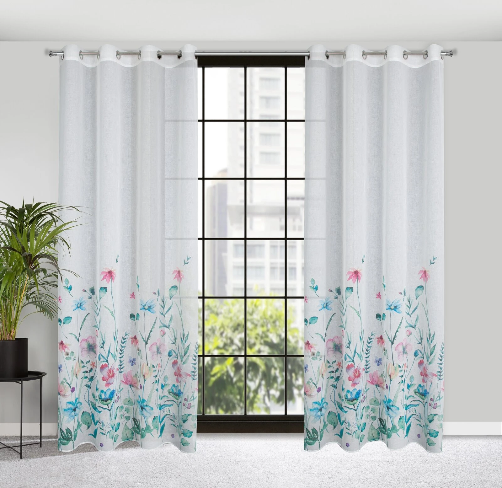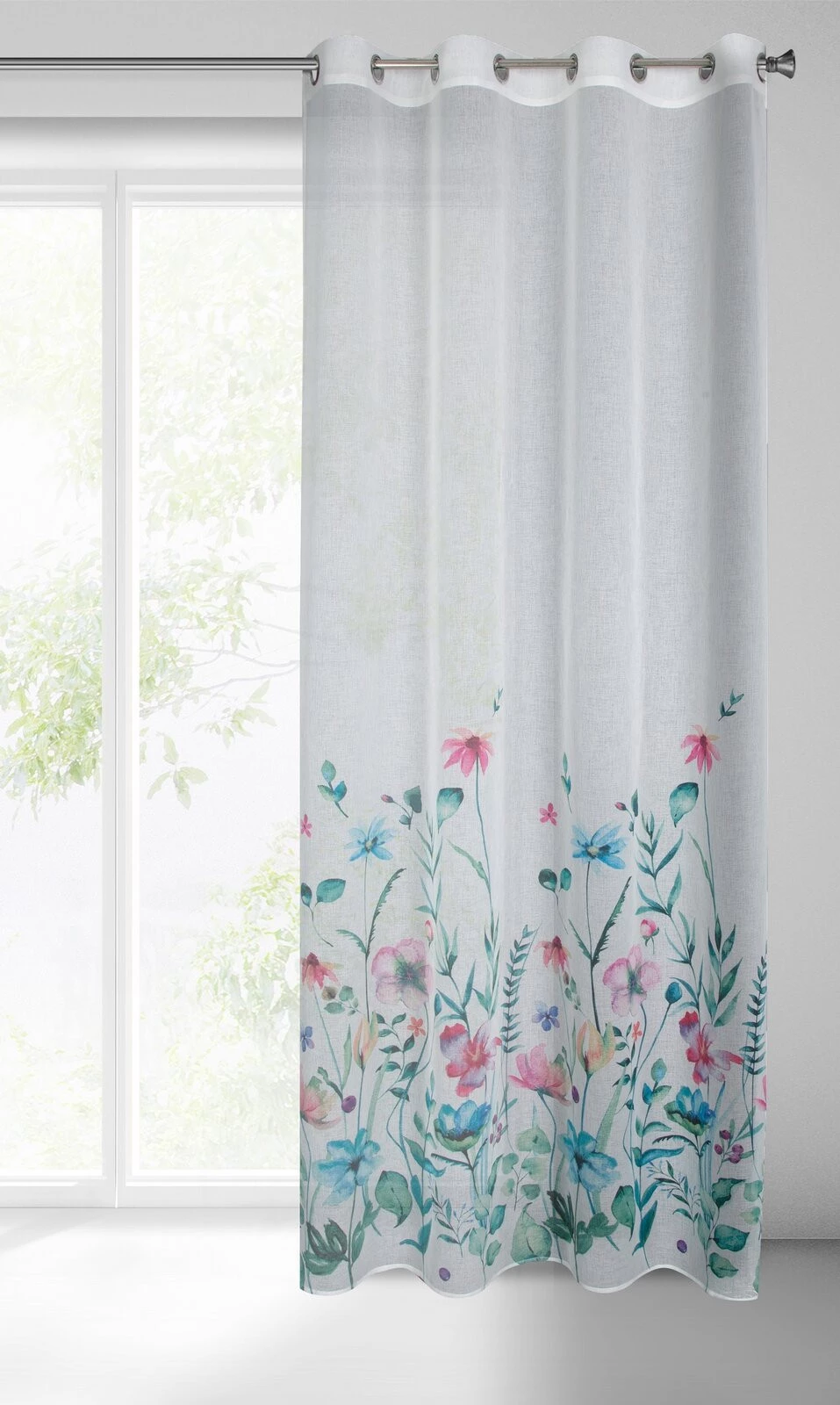 Zasłona z nadrukowanym motywem kwiatowym szerokość: 140 cm, długość: 250 cm, kolor: biały, Gramatura: 70 GSM, Skład: 100% poliester