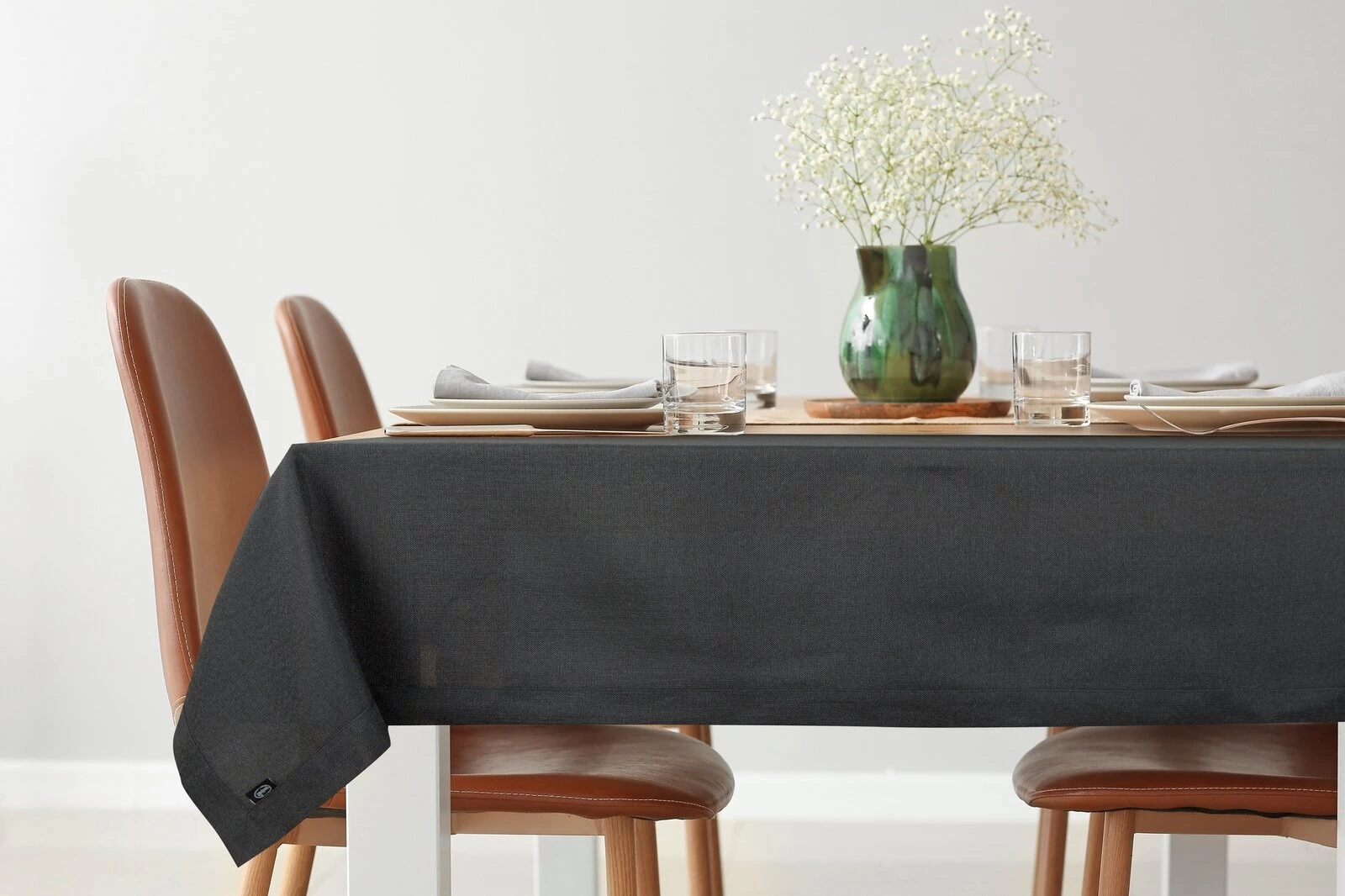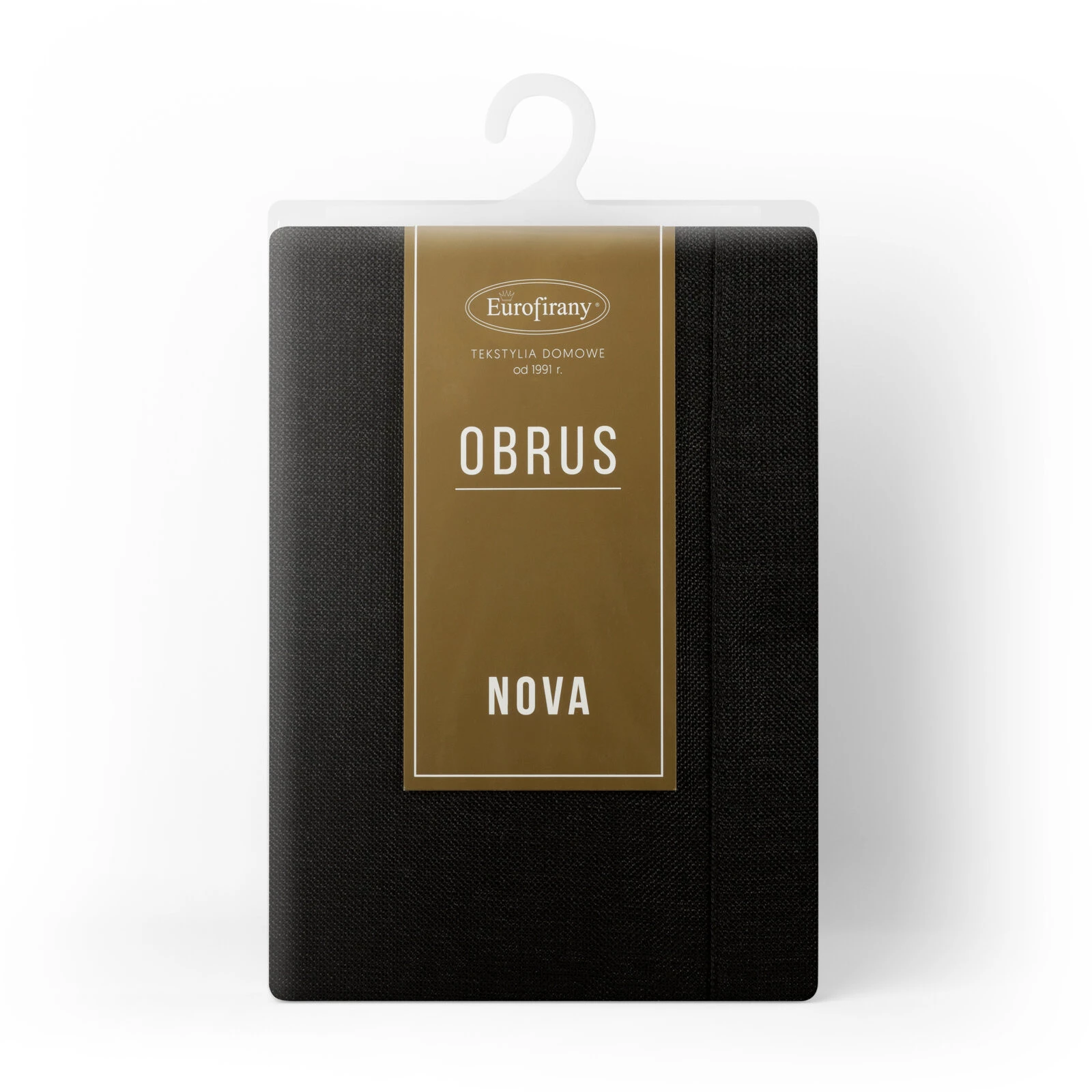 Obrus zdobiony kantą szerokość: 145 cm, długość: 300 cm, kolor: czarny, Gramatura: 255 GSM, Skład: 100% poliester