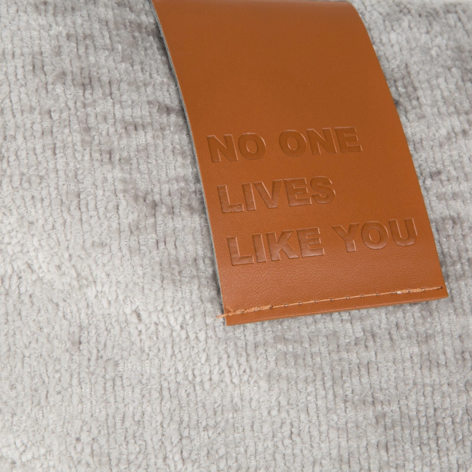 Poszewka dekoracyjna zdobiona skórzaną wstawką szerokość: 45 cm, długość: 45 cm, kolor: szary, Gramatura: 230 GSM, Skład: 30% bawełna, 70% poliester