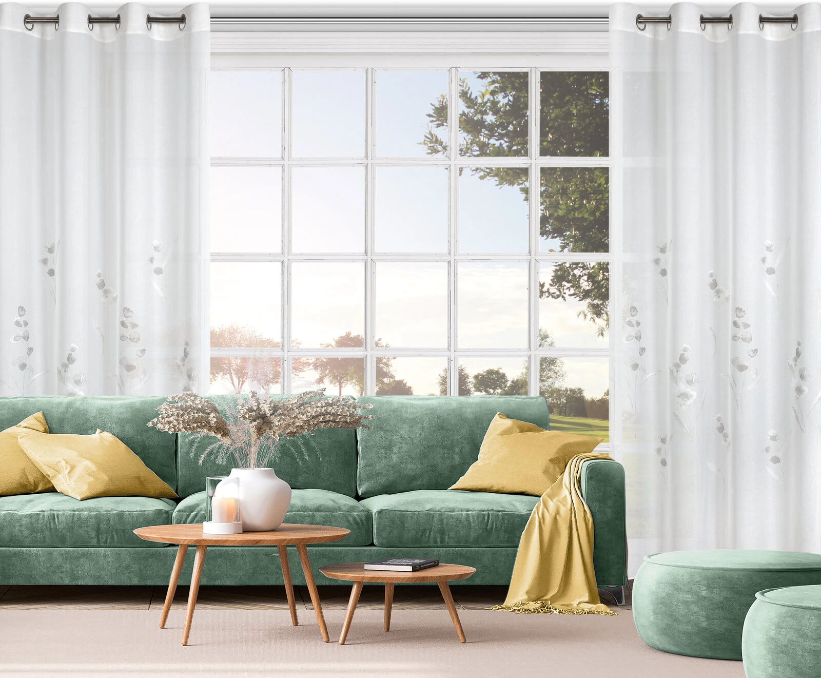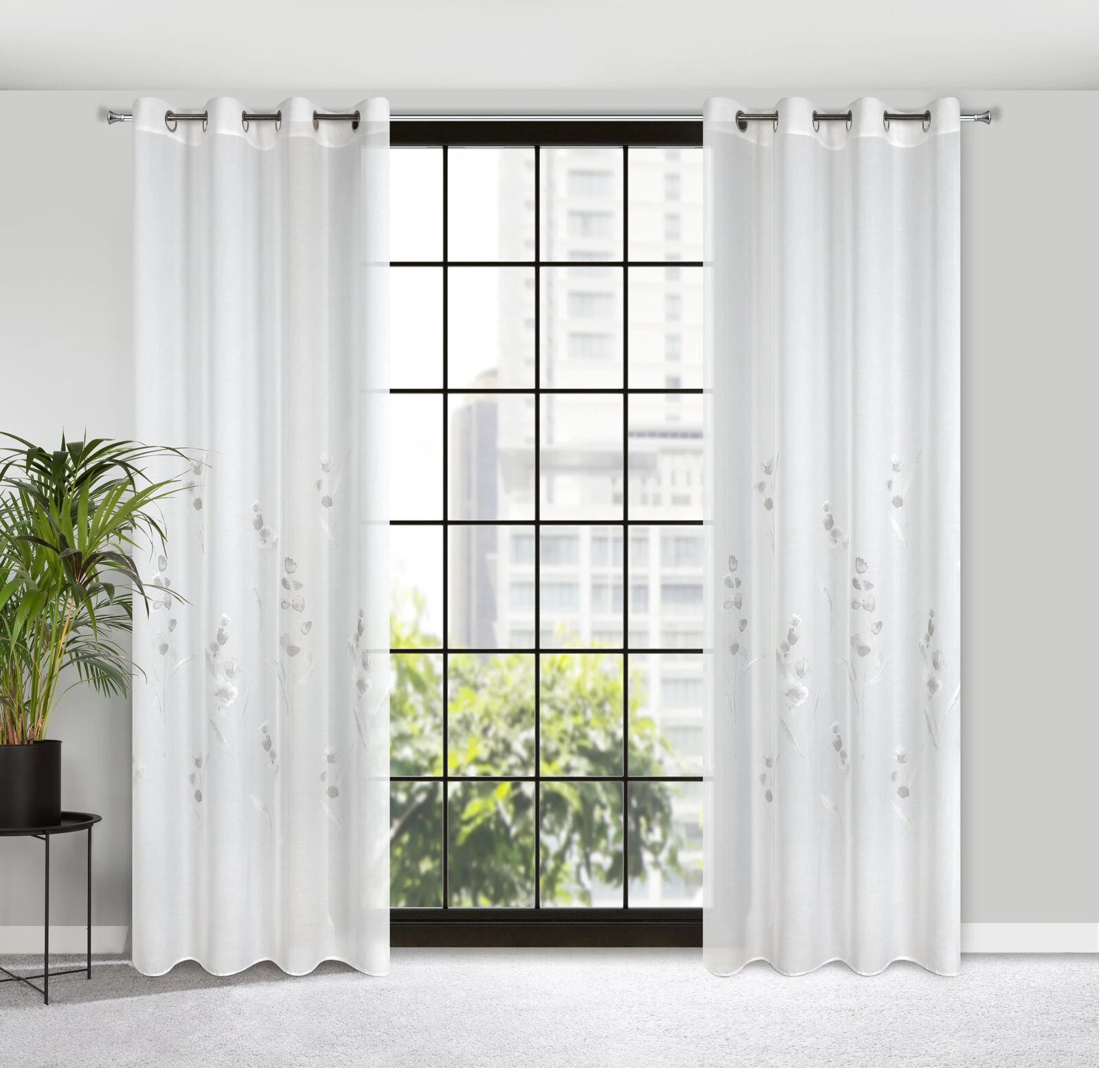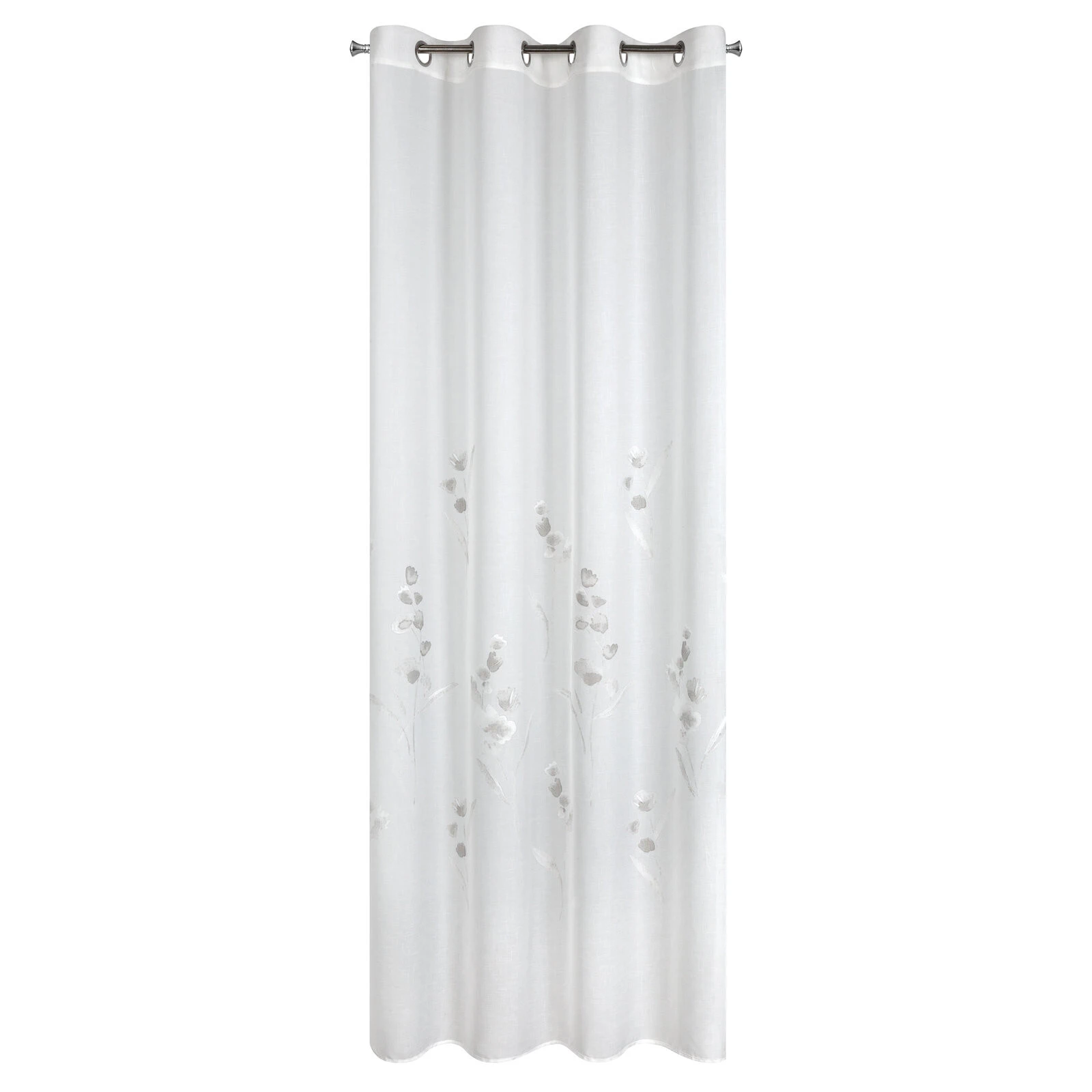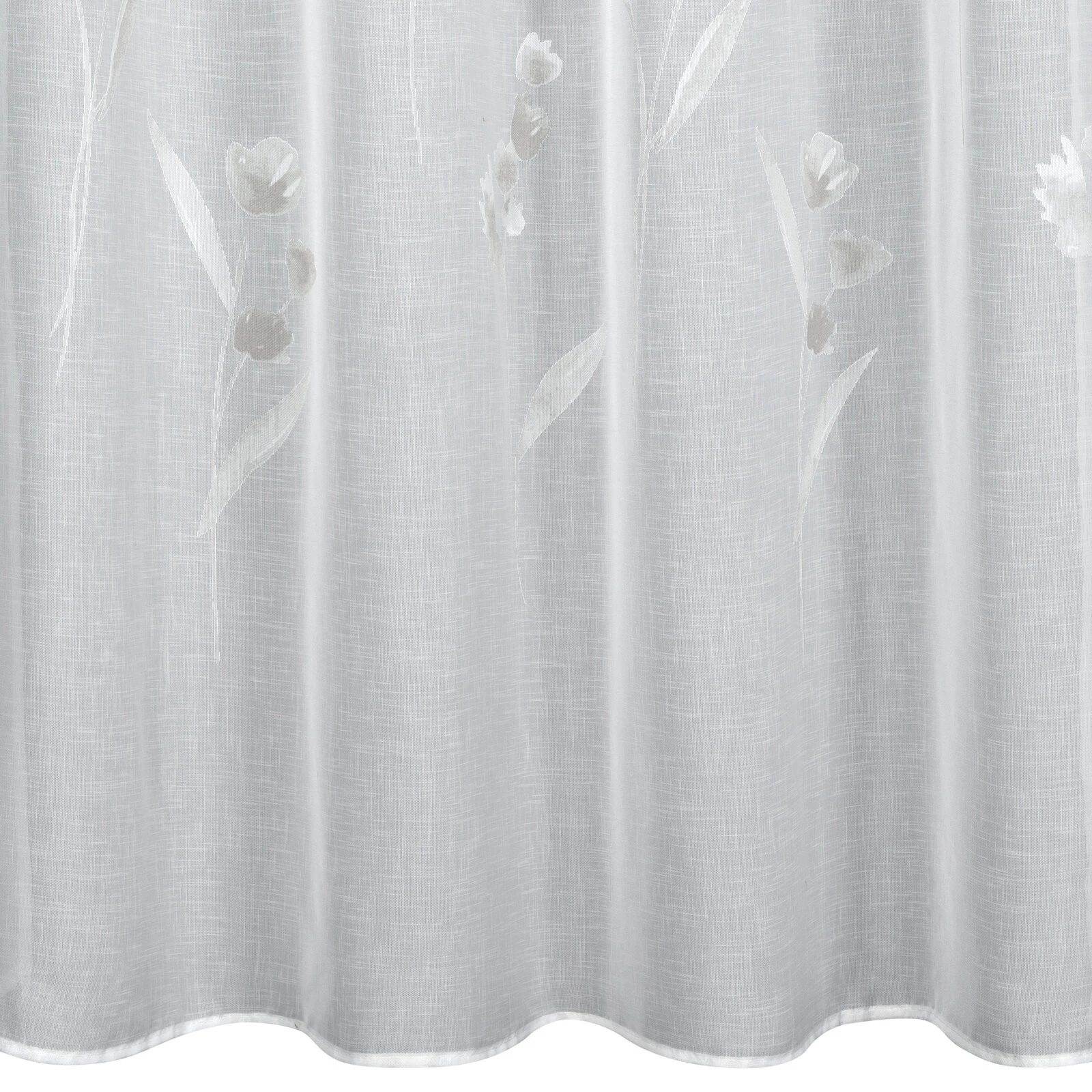 - Firana gotowa zdobiona kwiatowym wzorem szerokość: 140 cm, długość: 250 cm, kolor: biały, Gramatura: 85 GSM, Skład: 100% poliester