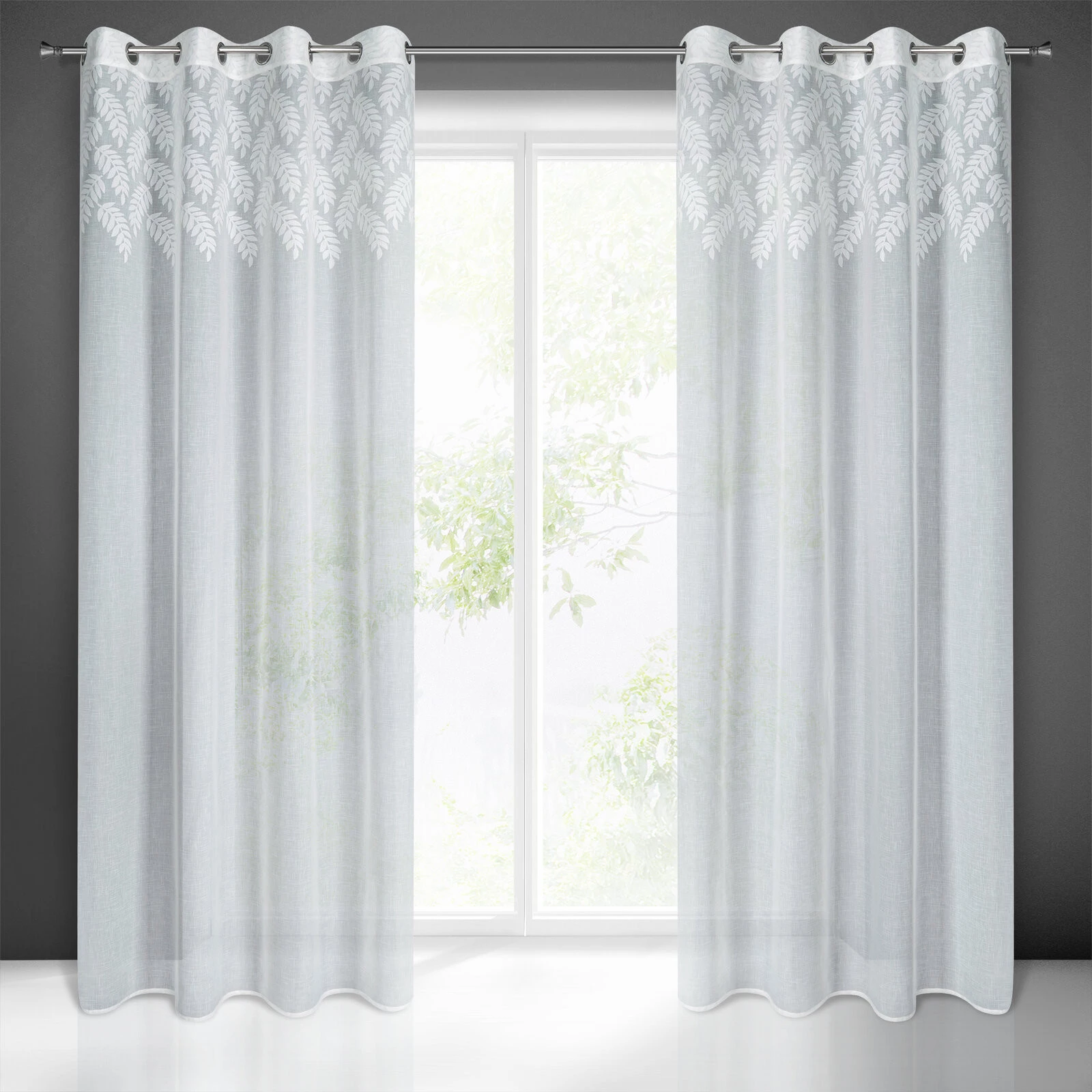 - Firana gotowa zdobiona wzorem roślinnym szerokość: 140 cm, długość: 250 cm, kolor: biały, Gramatura: 85 GSM, Skład: 100% poliester