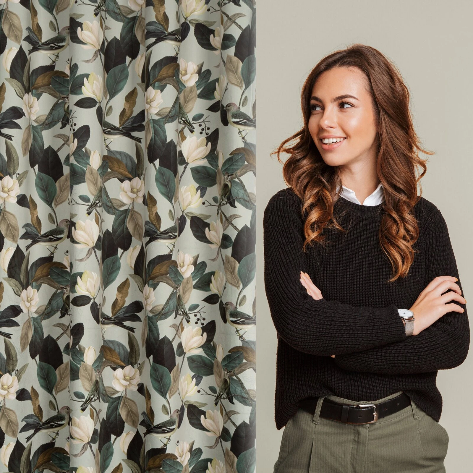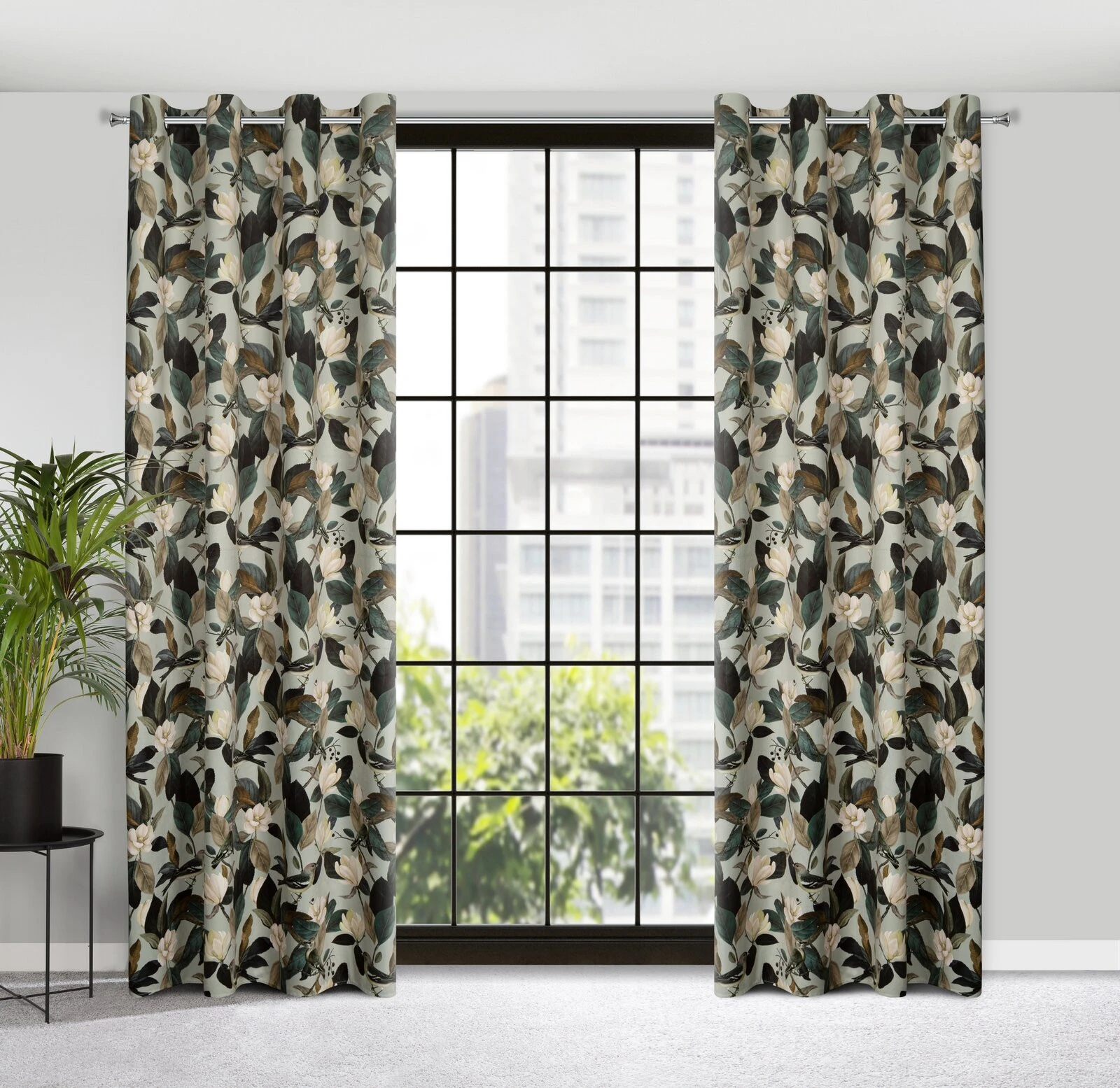- Zasłona welwetowa z nadrukiem kwiatowym szerokość: 140 cm, długość: 250 cm, kolor: oliwkowy, Gramatura: 200 GSM, Skład: 100% poliester