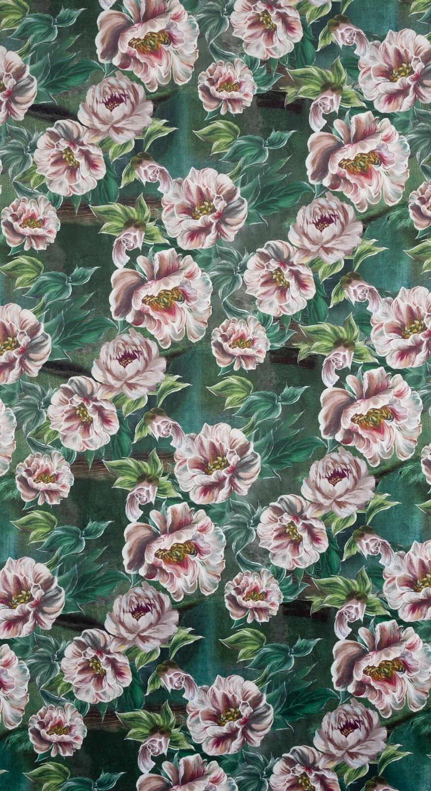 Zasłona welwetowa na taśmie z ukrytymi szelkami z kwiatowym nadrukiem szerokość: 140 cm, długość: 270 cm, kolor: zielony, Gramatura: 200 GSM, Skład: 100% poliester