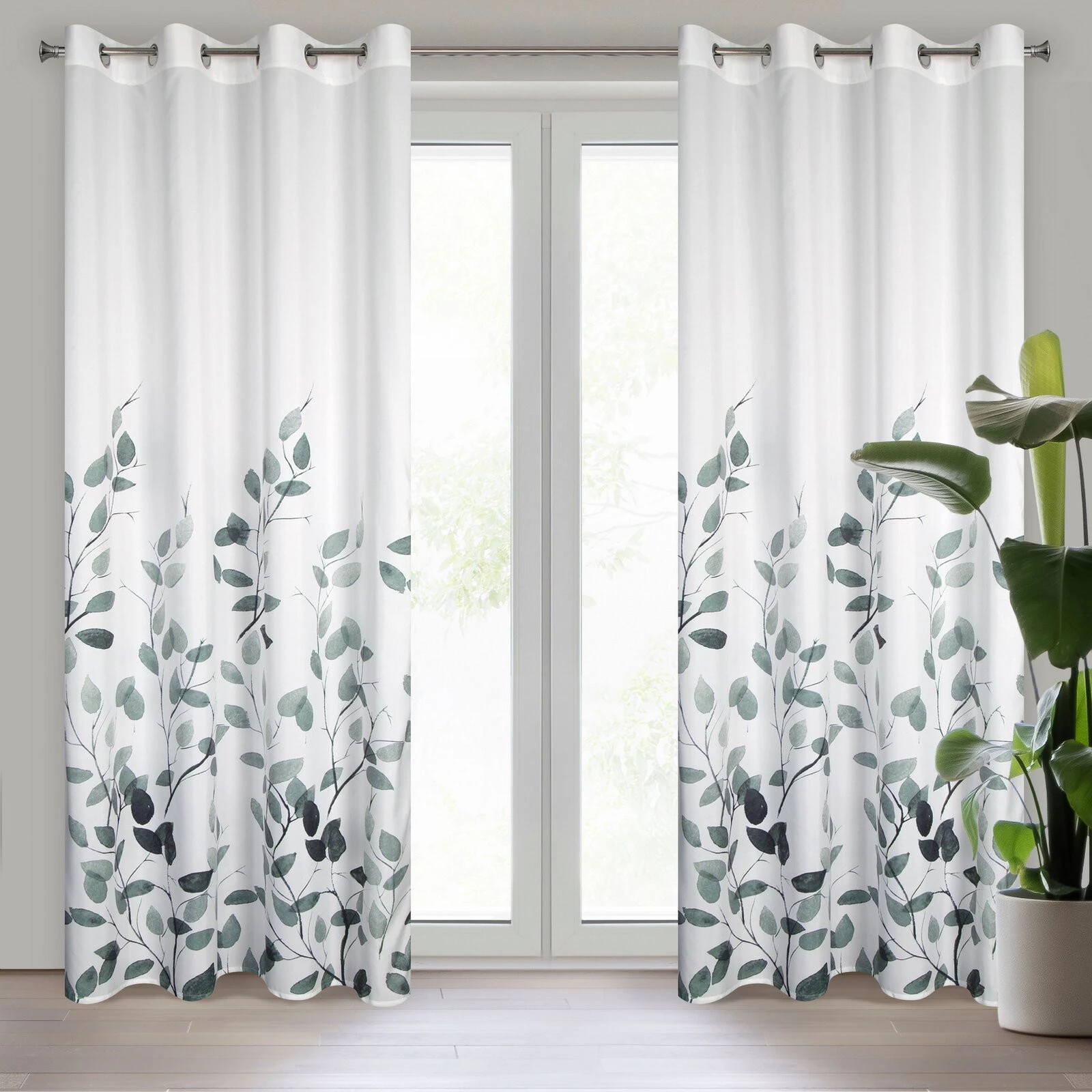 - Zasłona gotowa z mikrofibry z kwiatowym nadrukiem szerokość: 140 cm, długość: 250 cm, kolor: biały, Gramatura: 75 GSM, Skład: 100% poliester