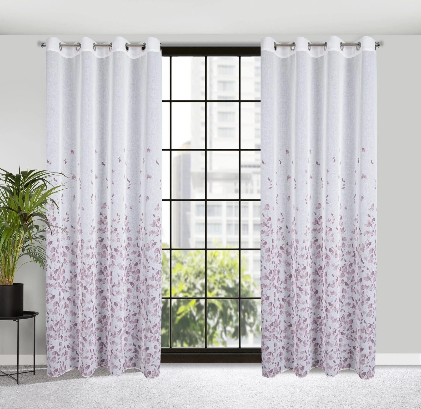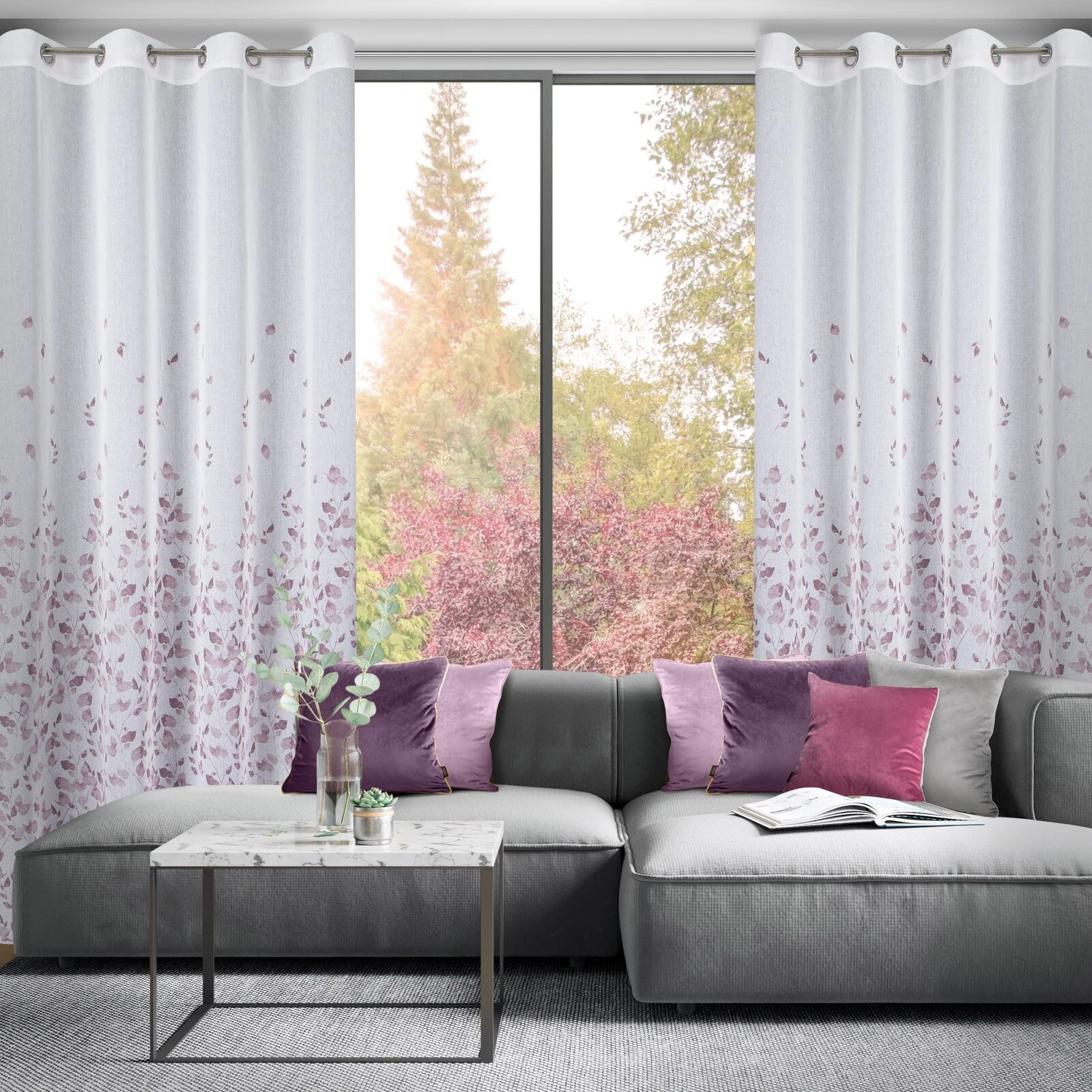Zasłona gotowa z kwiatowym nadrukiem szerokość: 140 cm, długość: 250 cm, kolor: biały, Gramatura: 75 GSM, Skład: 100% poliester