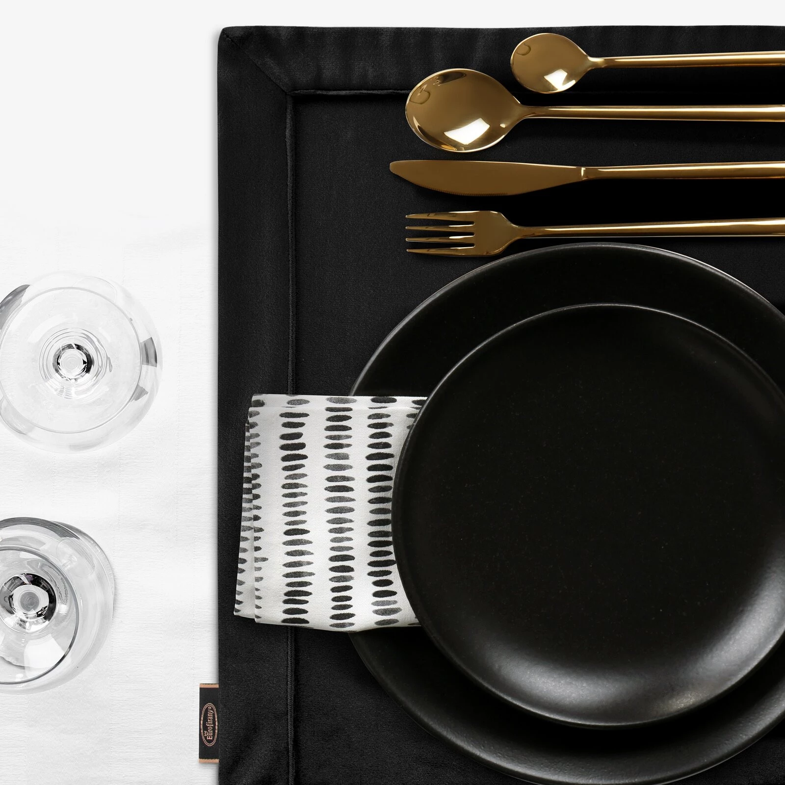 - Obrus welwetowy szerokość: 85 cm, długość: 85 cm, kolor: czarny, Gramatura: 250 GSM GSM, Skład: 100% poliester