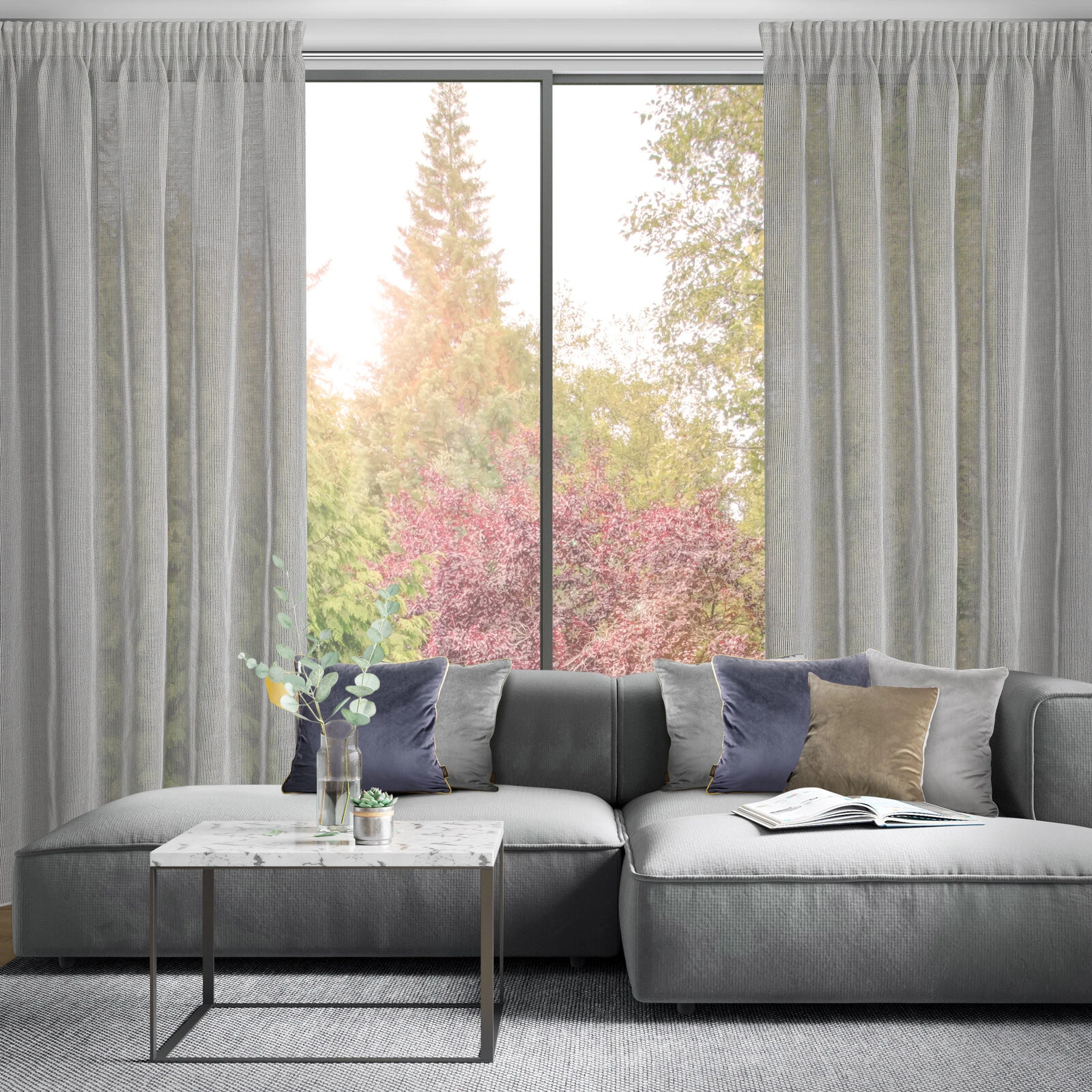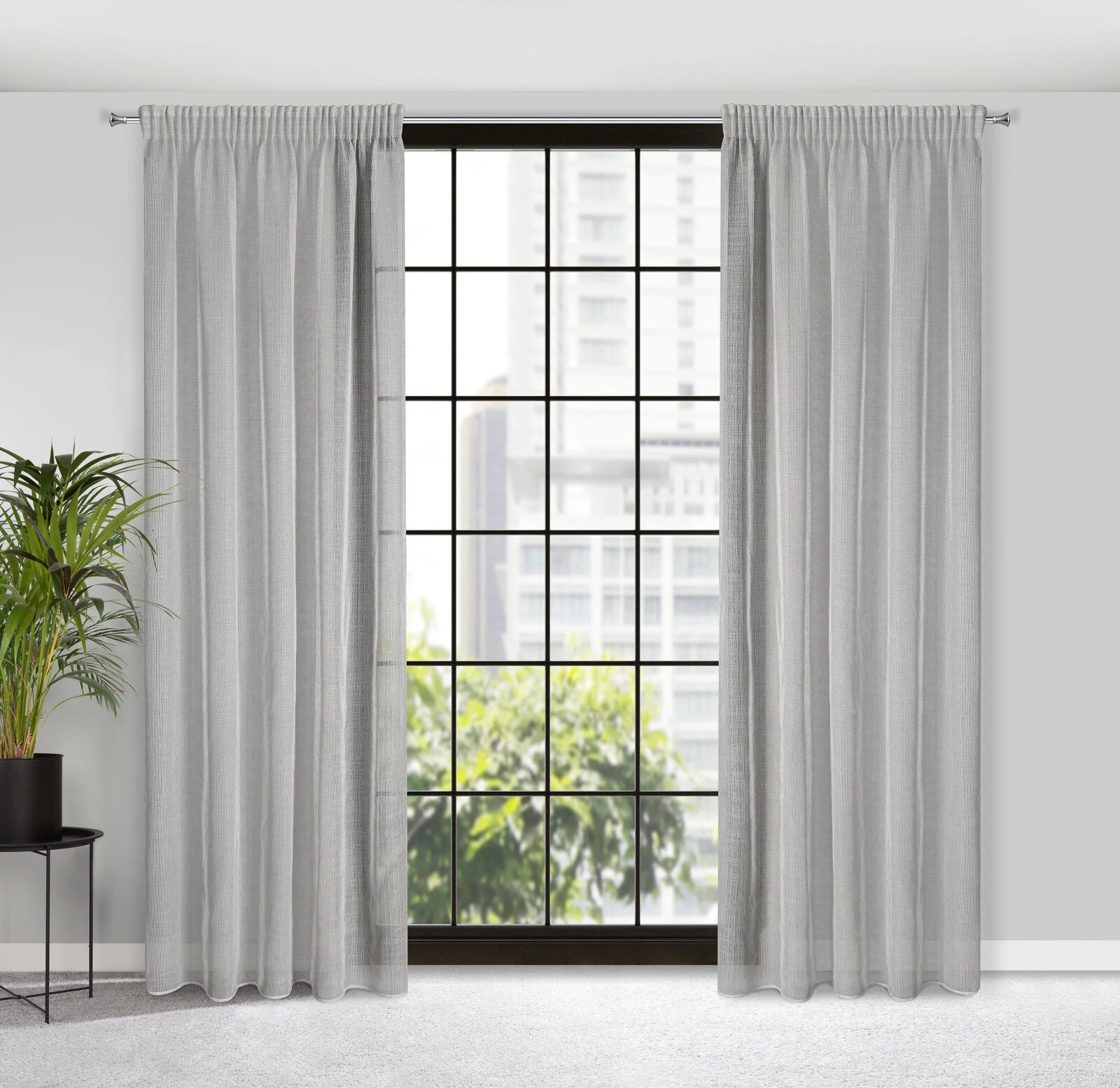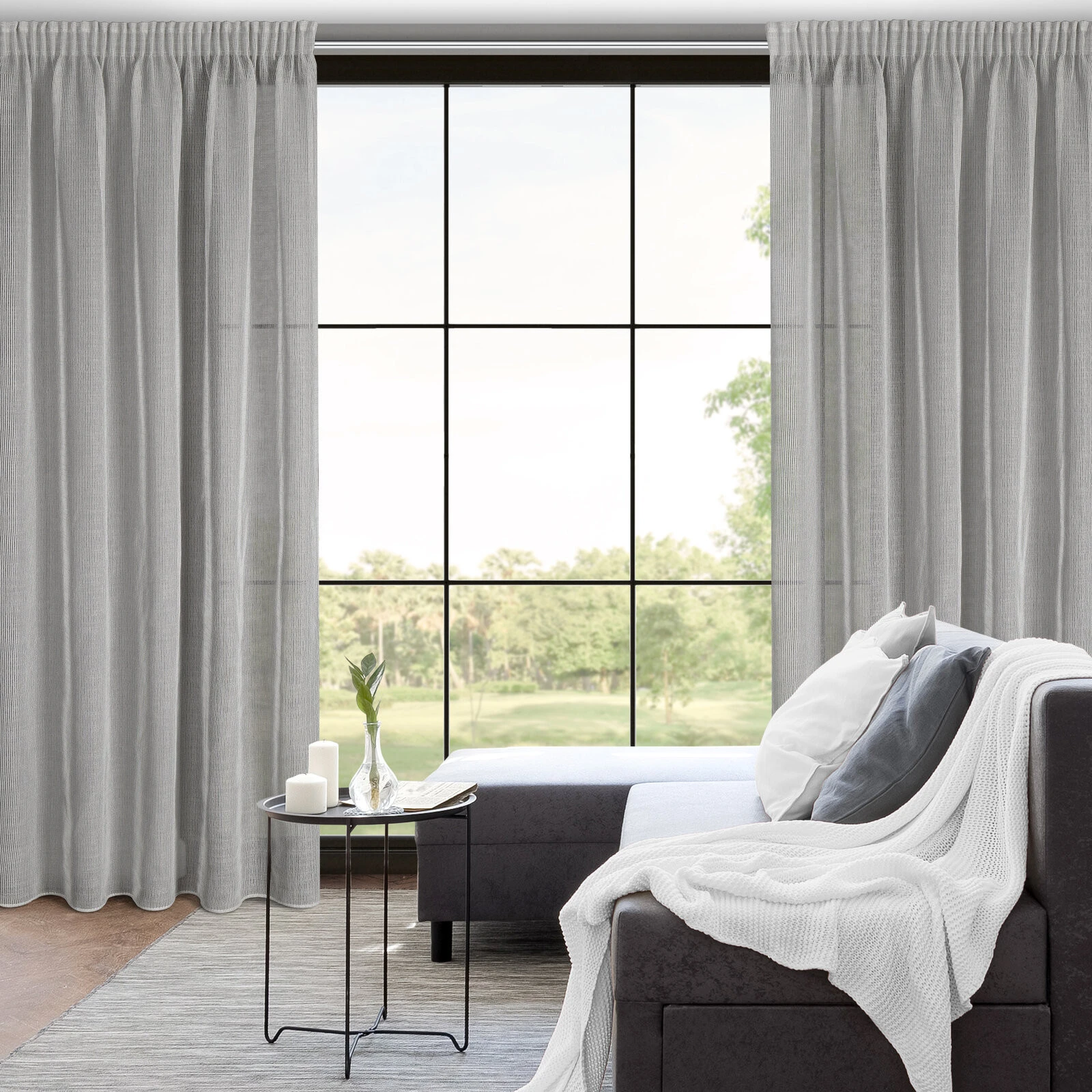 Firana o strukturze siatki w stylu eco szerokość: 140 cm, długość: 300 cm, kolor: szary, Skład: 100% poliester