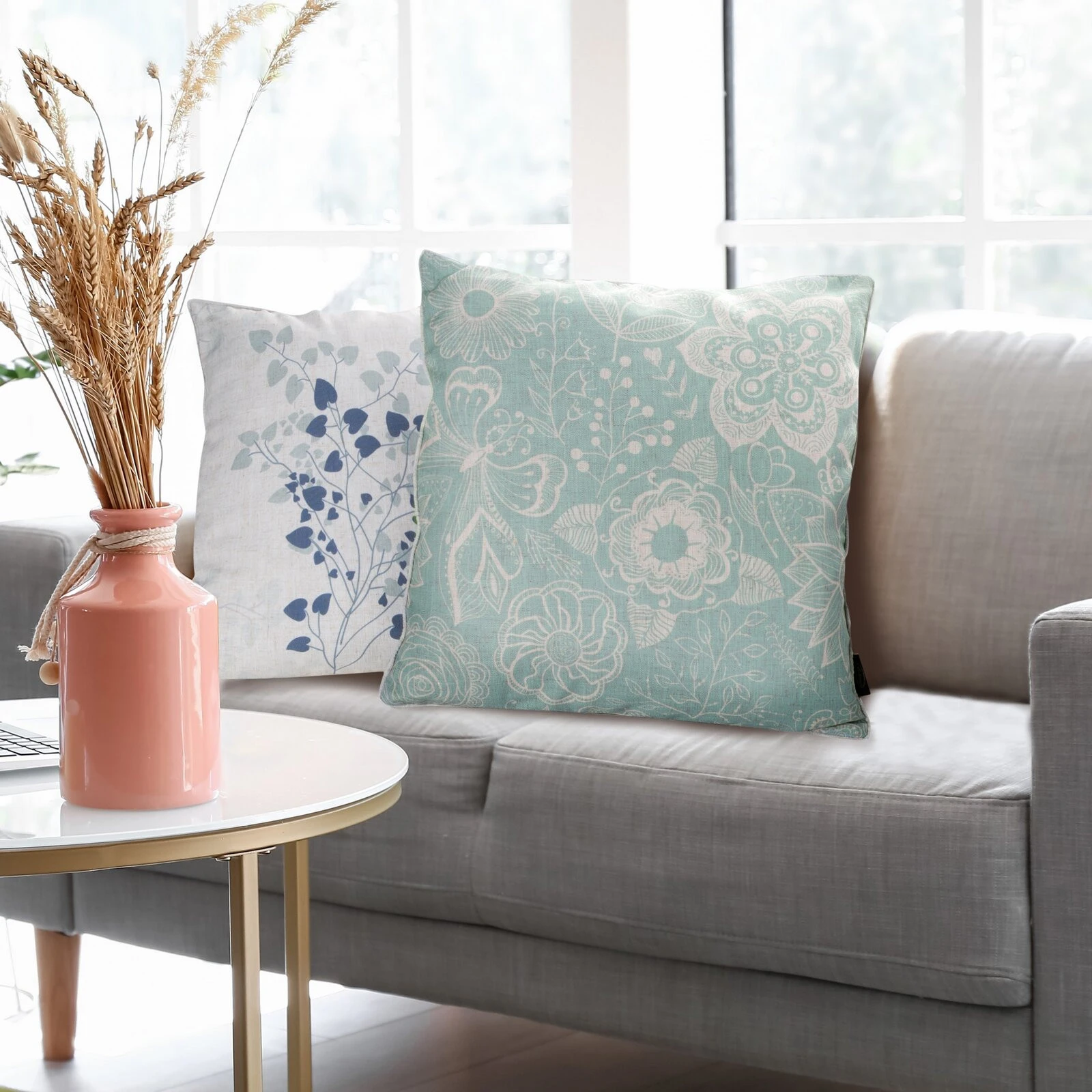 Poszewka dekoracyjna dwustronna welwet i len szerokość: 45 cm, długość: 45 cm, kolor: jasnoniebieski, Gramatura: 250 GSM, Skład: 50% poliester, 15% len, 35% bawełna