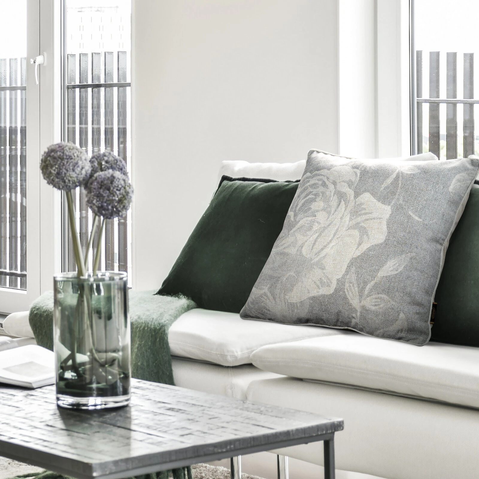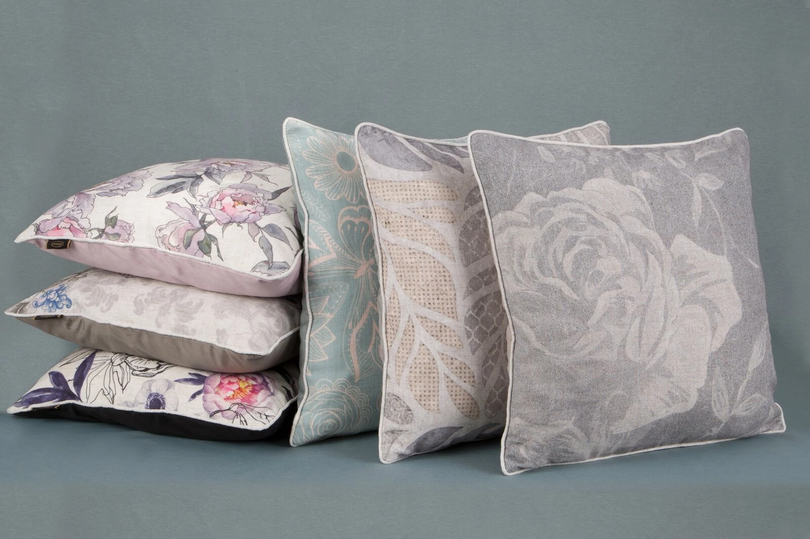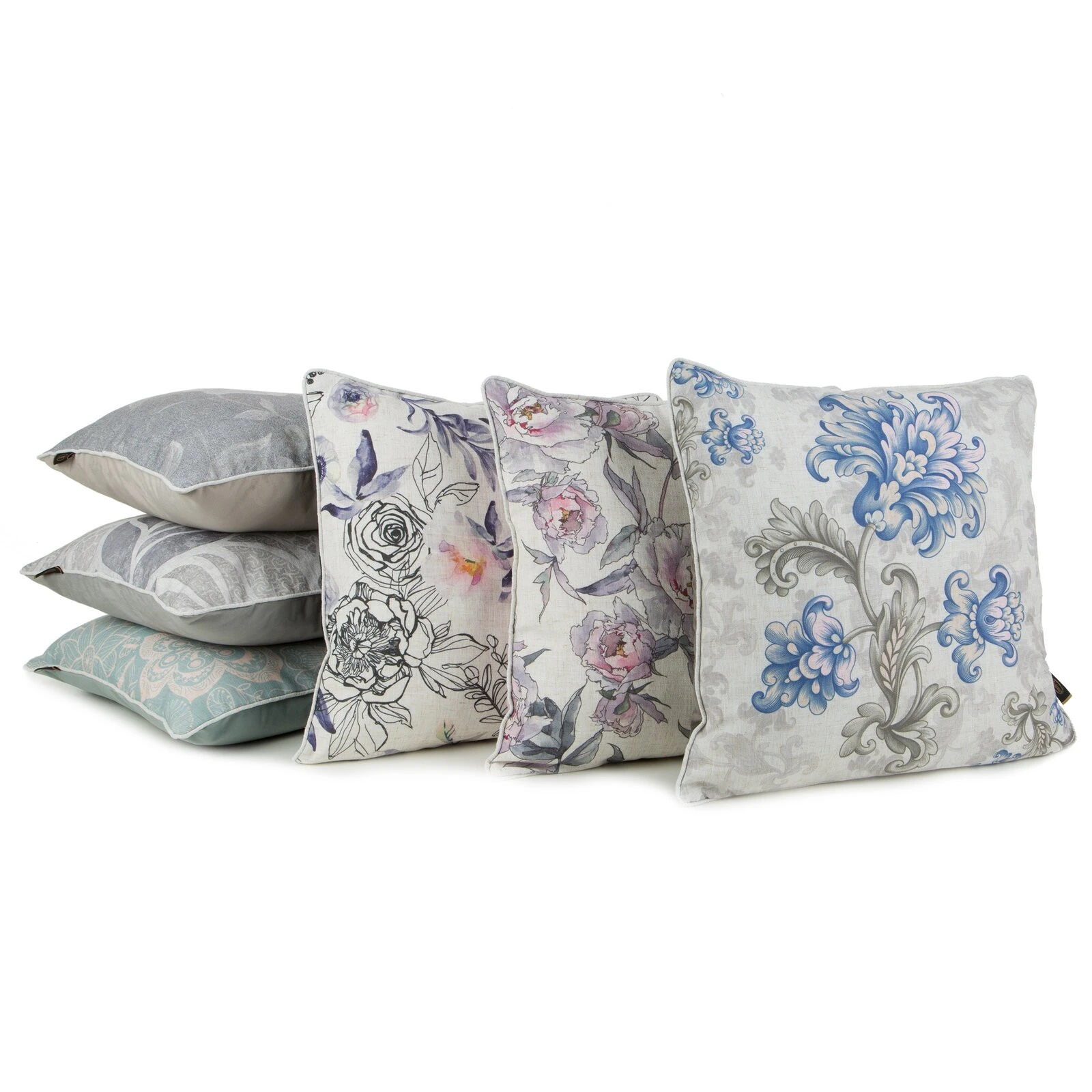 Poszewka dekoracyjna z nadrukiem szerokość: 45 cm, długość: 45 cm, kolor: stalowy, Gramatura: 250 GSM, Skład: 50% poliester, 15% len, 35% bawełna