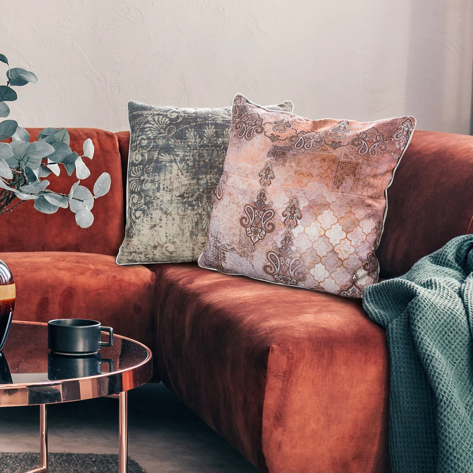 Poszewka dekoracyjna dwustronna welwet i len szerokość: 45 cm, długość: 45 cm, kolor: pomarańczowy, Gramatura: 250 GSM, Skład: 50% poliester, 15% len, 35% bawełna