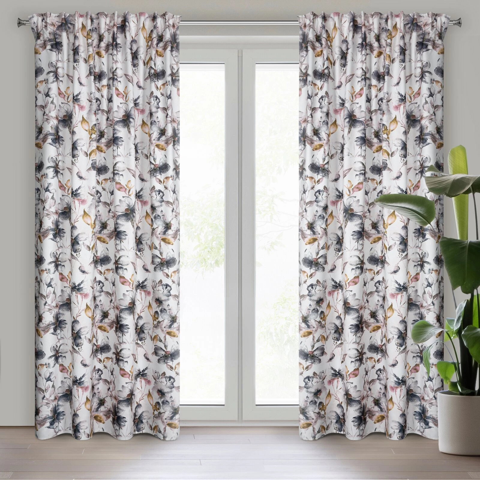 - Zasłona na taśmie z ukrytymi szelkami z kwiatowym nadrukiem, styl eko szerokość: 140 cm, długość: 270 cm, kolor: biały, Gramatura: 260 GSM, Skład: 100% poliester