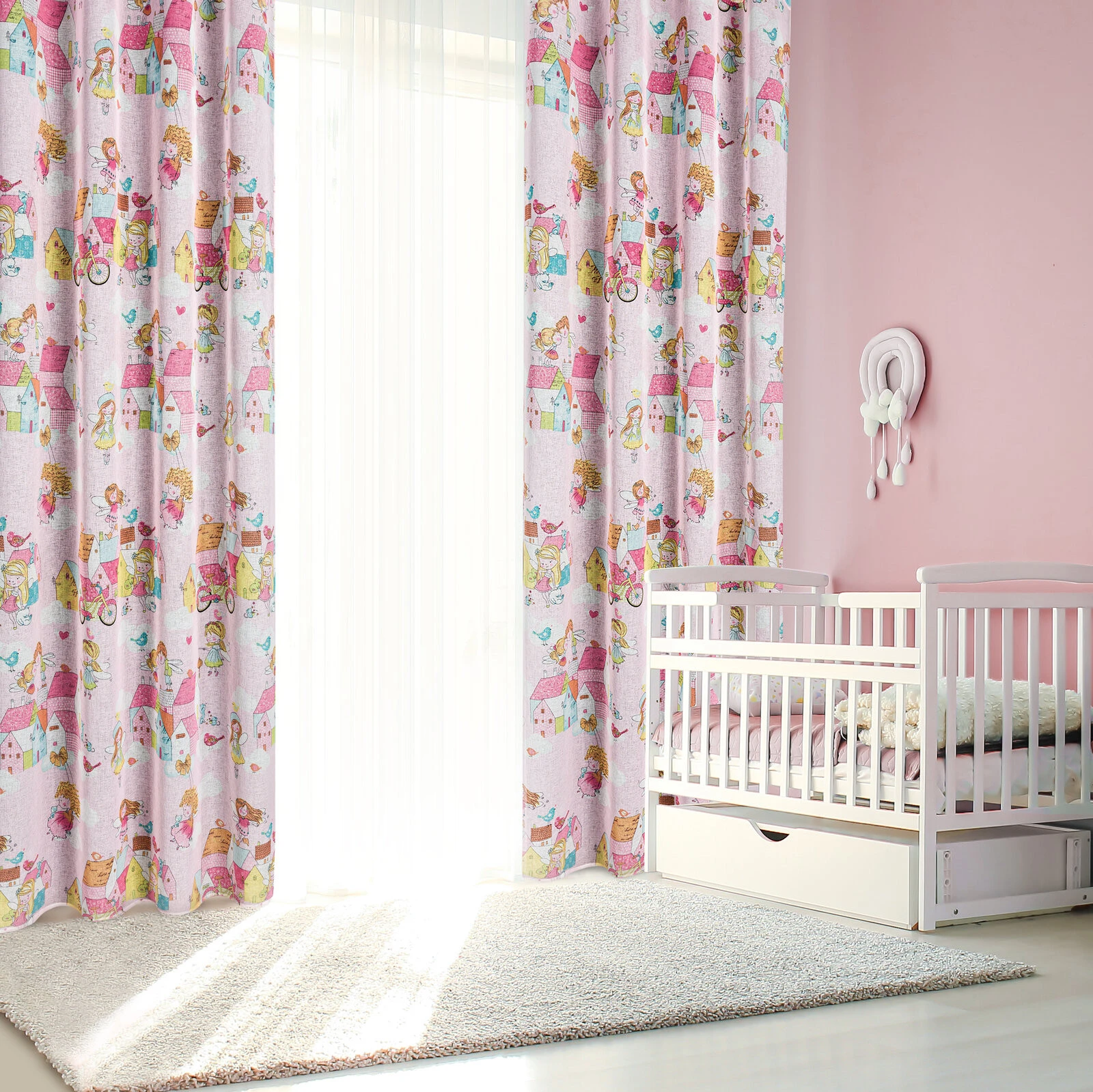 - Zasłona gotowa ze wzorem dziecięcym szerokość: 140 cm, długość: 250 cm, kolor: różowy, Gramatura: 130 GSM, Skład: 100% poliester