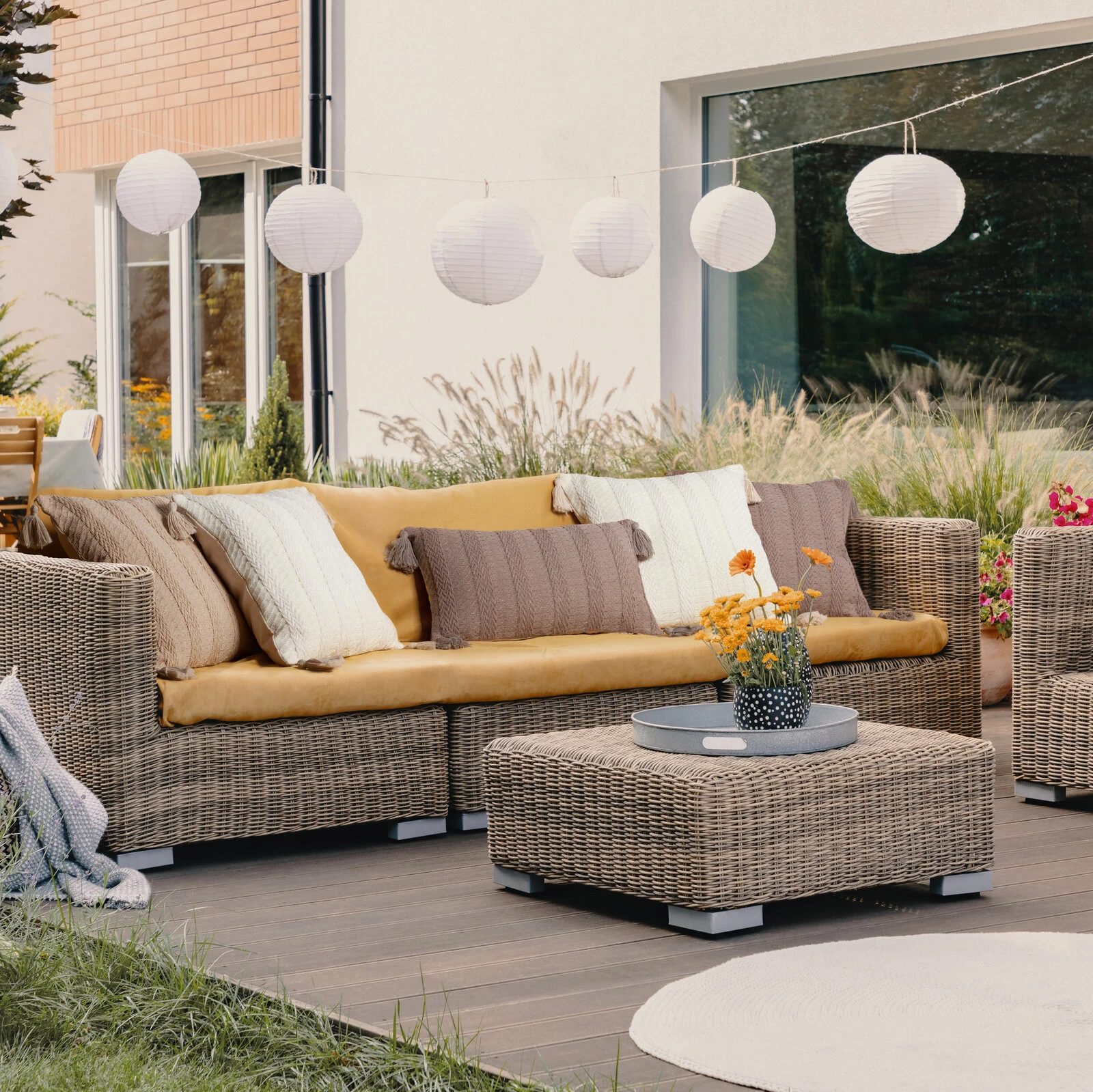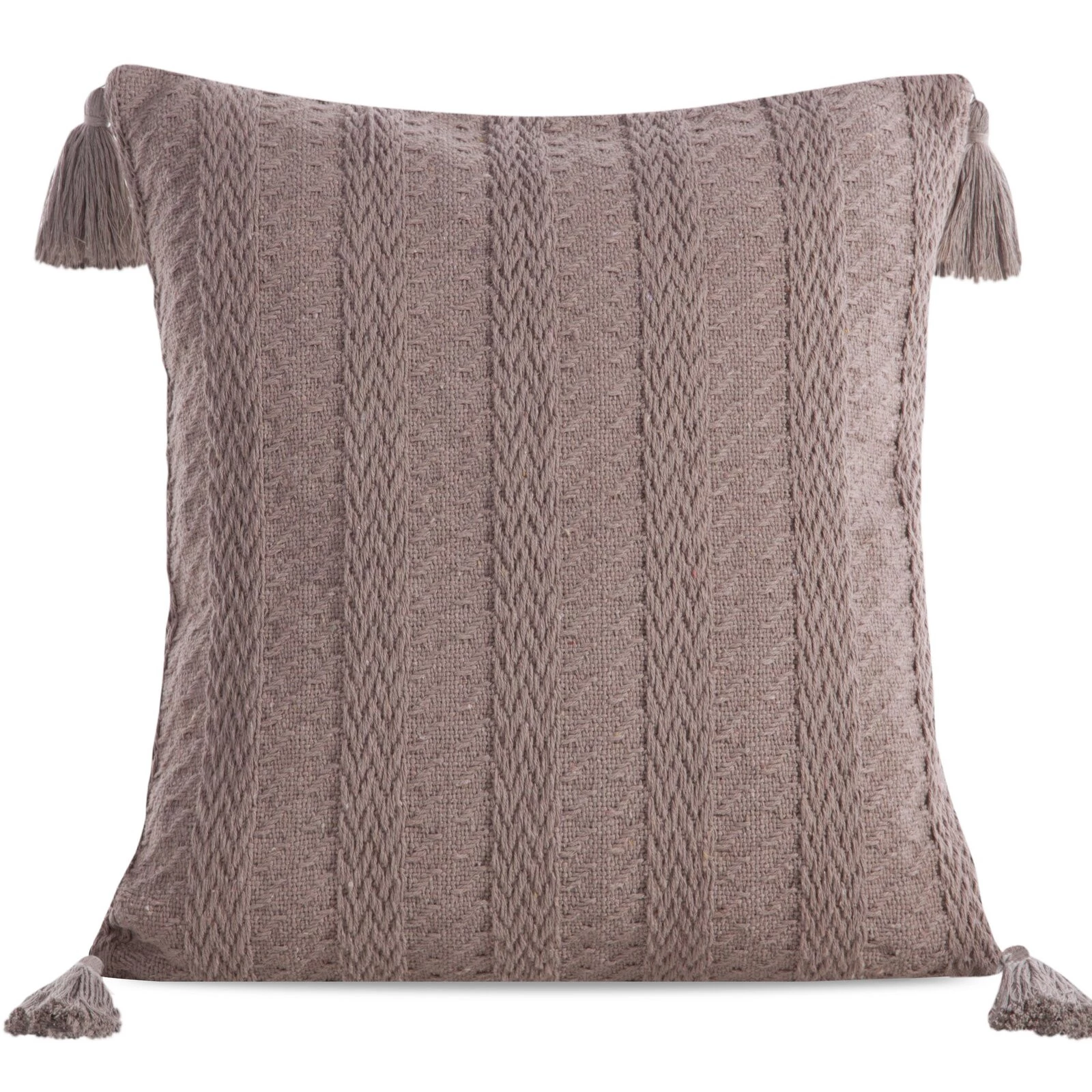 Poszewka dekoracyjna w stylu boho zdobiona frędzlami szerokość: 45 cm, długość: 45 cm, kolor: brązowy, Gramatura: 230 GSM, Skład: 30% bawełna, 70% poliester