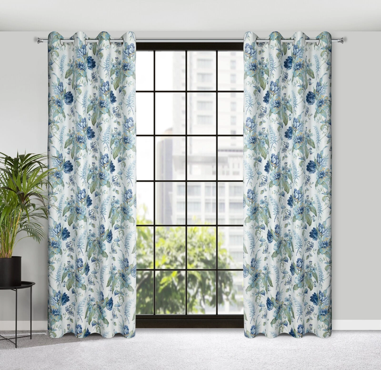 - Zasłona gotowa zaciemniająca z nadrukiem szerokość: 140 cm, długość: 250 cm, kolor: biały, Gramatura: 210 GSM, Skład: 100% poliester