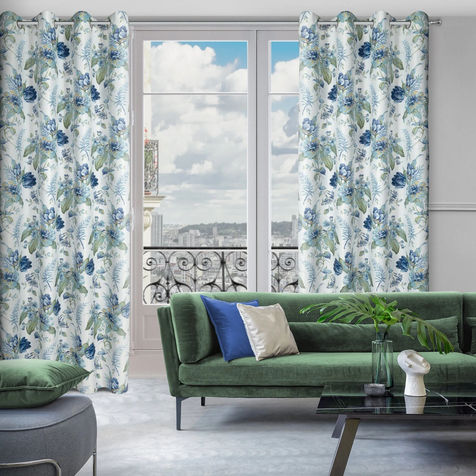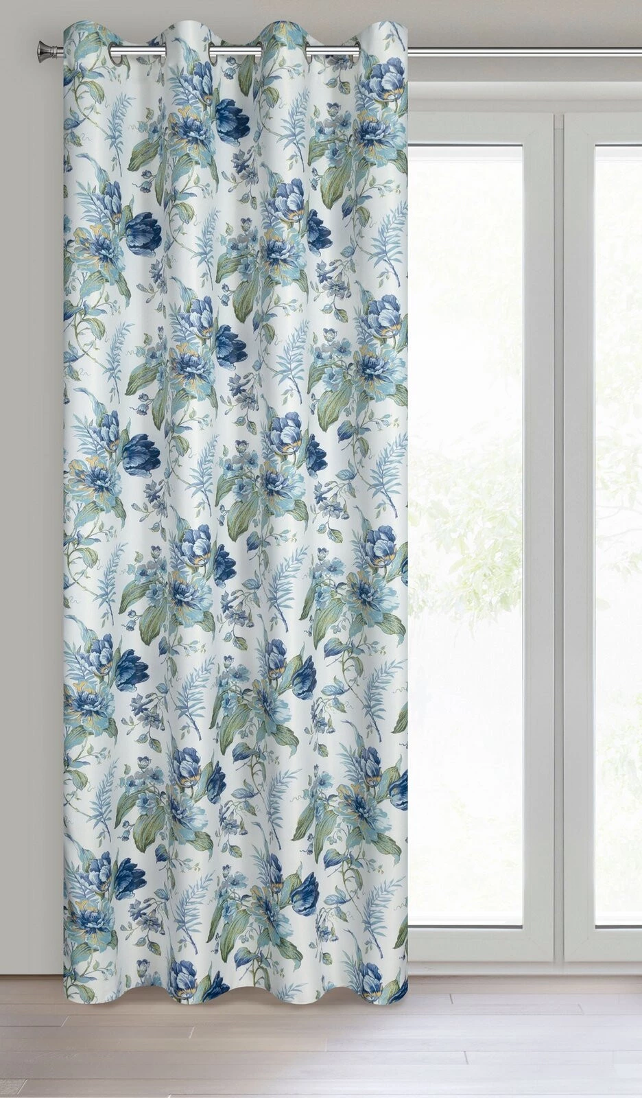 Zasłona gotowa zaciemniająca z nadrukiem szerokość: 140 cm, długość: 250 cm, kolor: biały, Gramatura: 210 GSM, Skład: 100% poliester