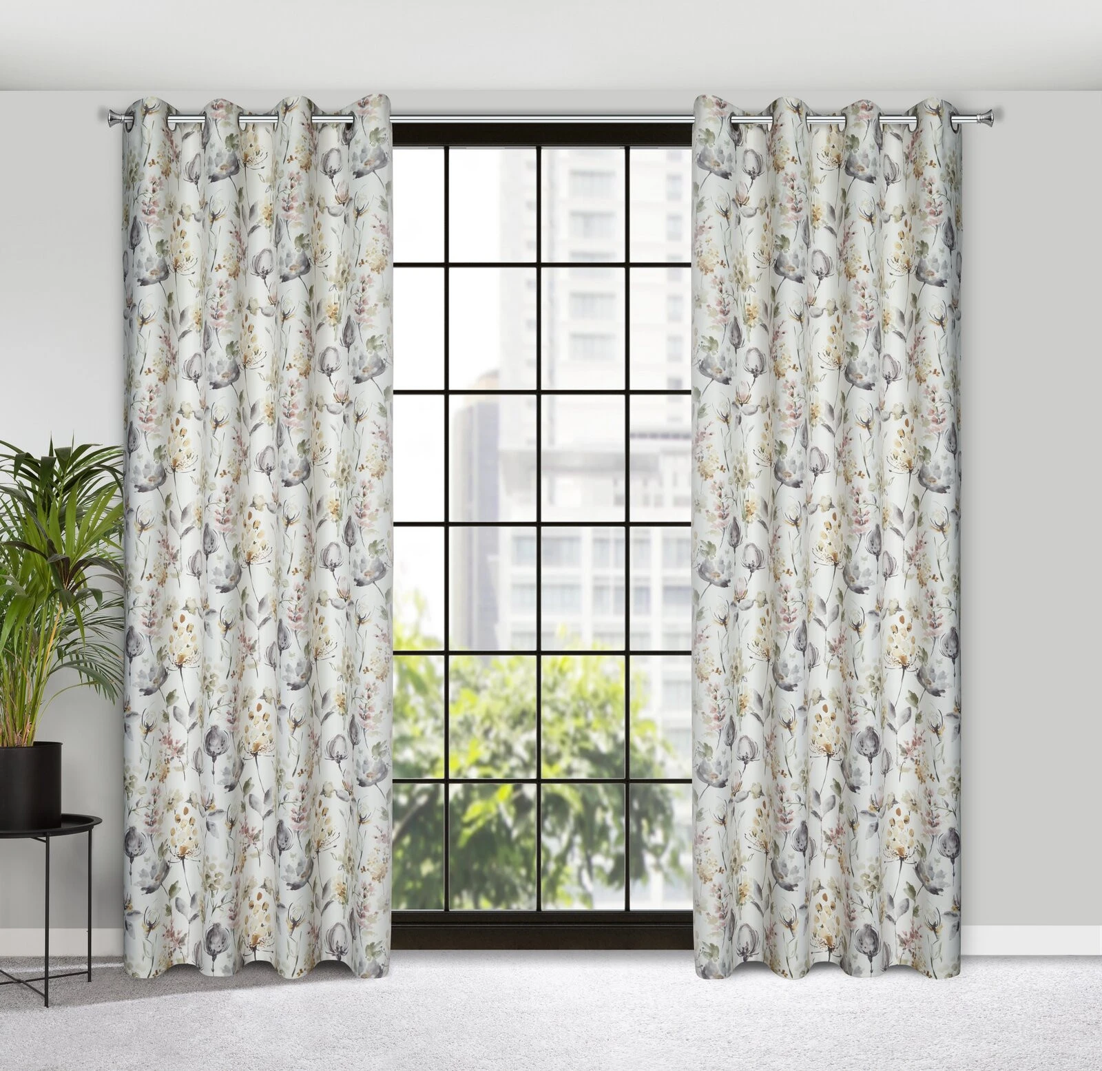 Zasłona zaciemniająca z nadrukiem szerokość: 140 cm, długość: 250 cm, kolor: biały, Gramatura: 210 GSM, Skład: 100% poliester
