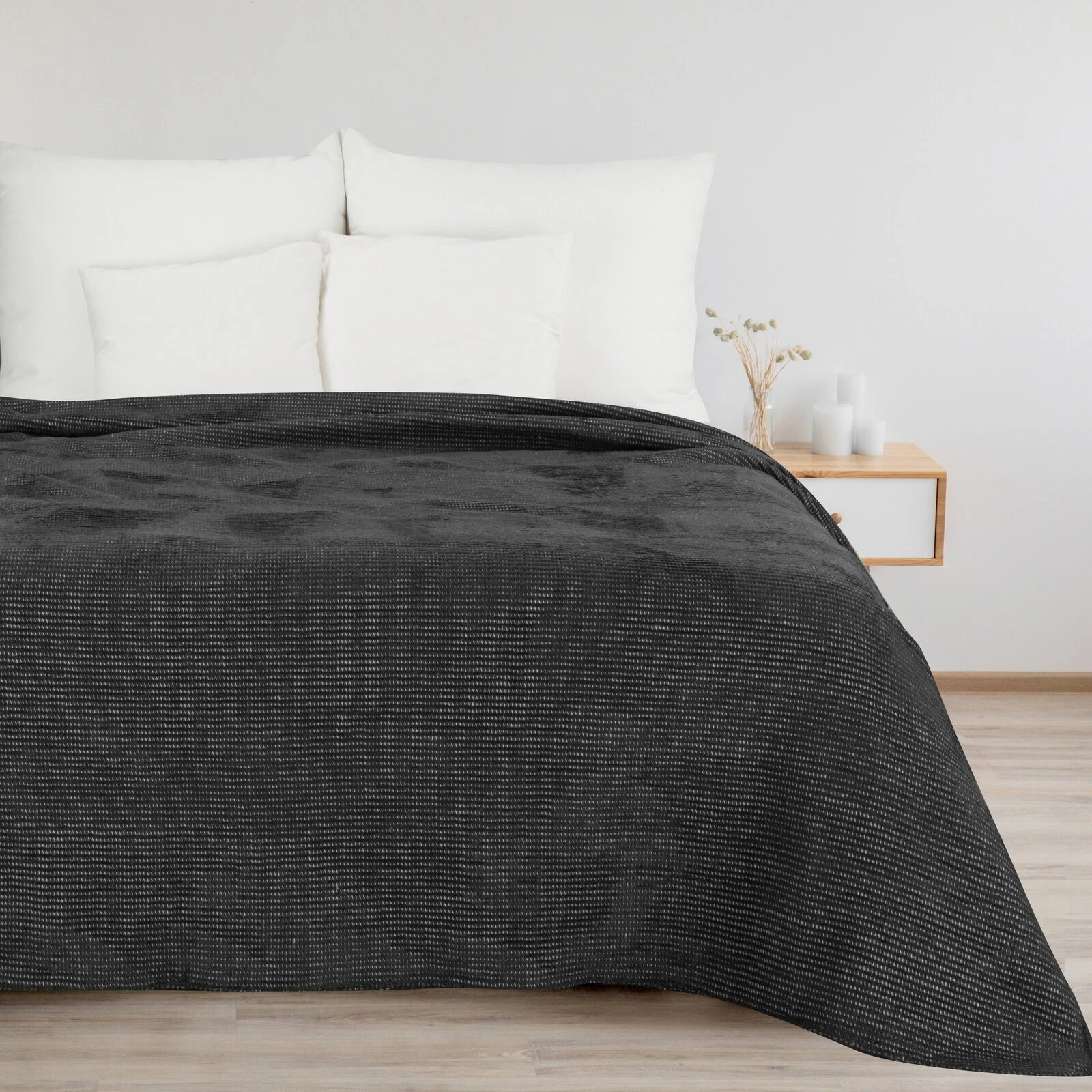 Koc bardzo miękki w dotyku, o strukturze waflowej szerokość: 200 cm, długość: 220 cm, kolor: czarny, Gramatura: 345 GSM GSM, Skład: 50% bawełna, 30% poliester, 20% akryl