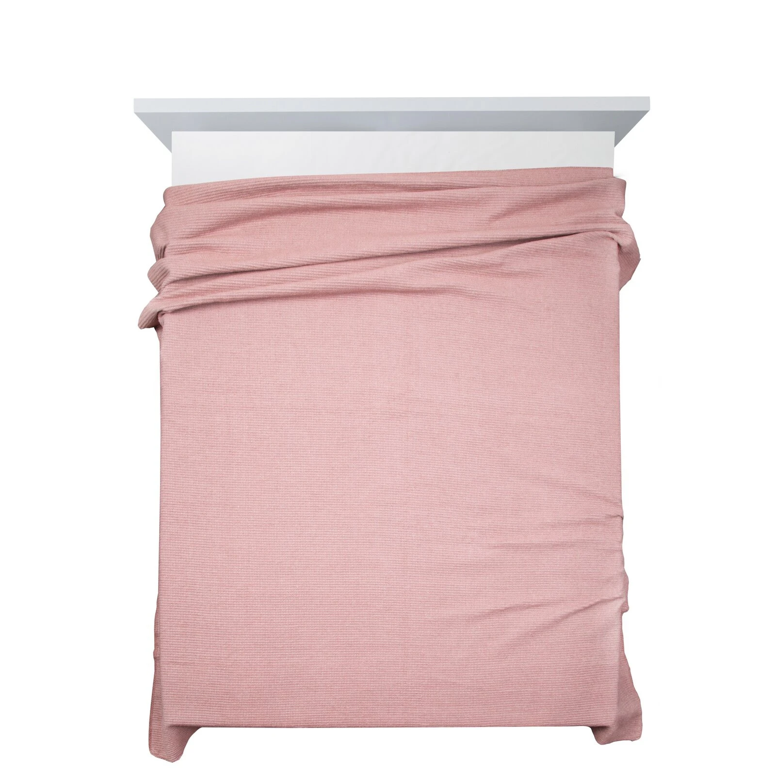 Koc bardzo miękki w dotyku, o strukturze waflowej szerokość: 180 cm, długość: 220 cm, kolor: pudrowy róż, Gramatura: 345 GSM GSM, Skład: 50% bawełna, 30% poliester, 20% akryl