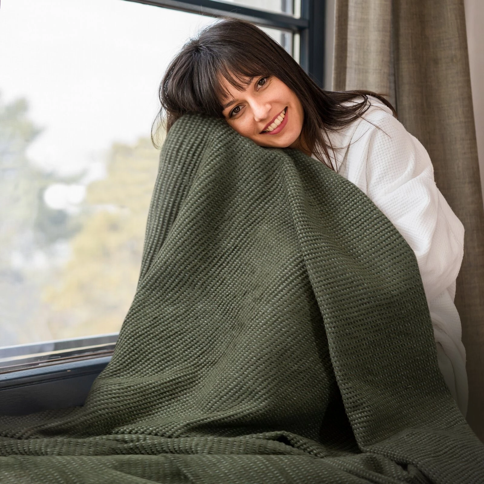 Koc bardzo miękki w dotyku, o strukturze waflowej szerokość: 150 cm, długość: 200 cm, kolor: kremowy, Gramatura: 345 GSM GSM, Skład: 50% bawełna, 30% poliester, 20% akryl