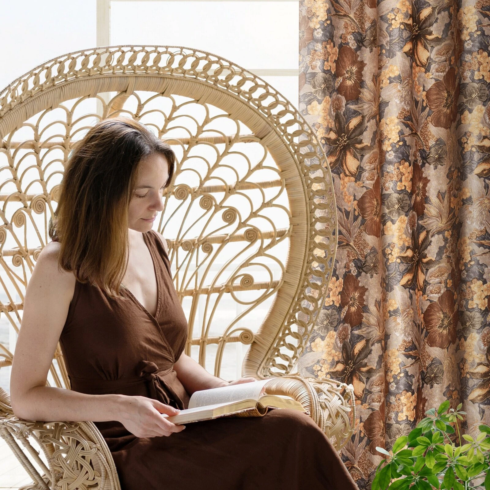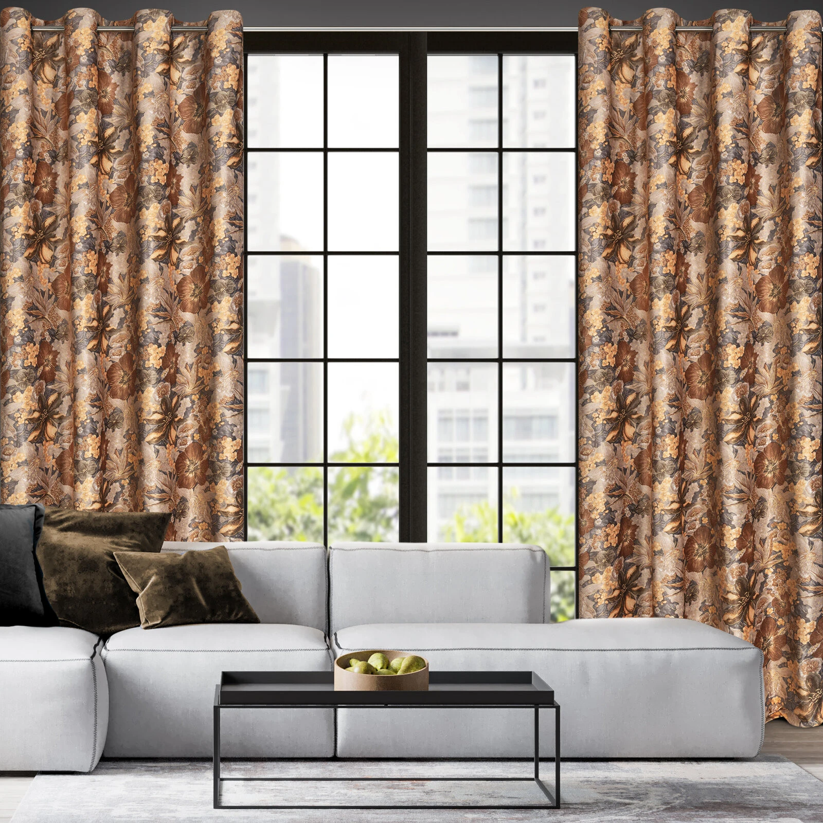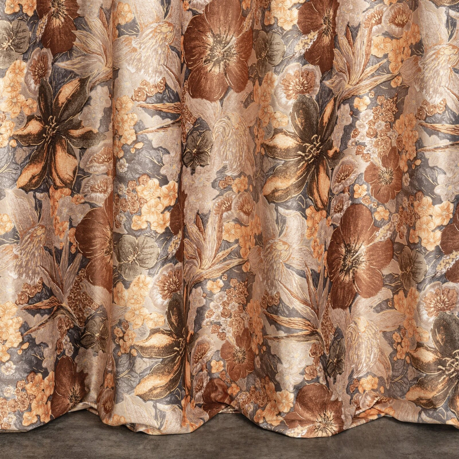 - Zasłona welwetowa z nadrukiem kwiatowym szerokość: 140 cm, długość: 250 cm, kolor: rudy, Gramatura: 200 GSM, Skład: 100% poliester