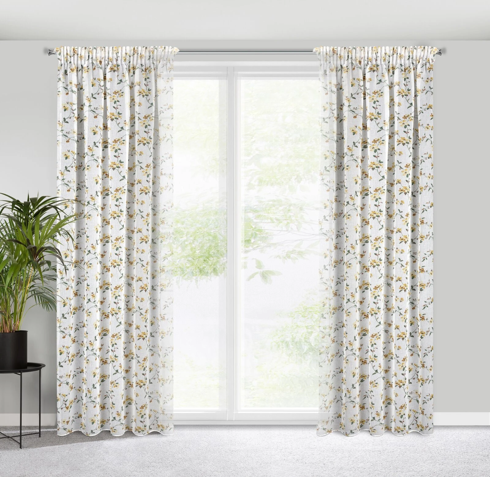 - Zasłona gotowa z nadrukiem kwiatowym szerokość: 140 cm, długość: 270 cm, kolor: biały, Gramatura: 75 GSM, Skład: 100% poliester
