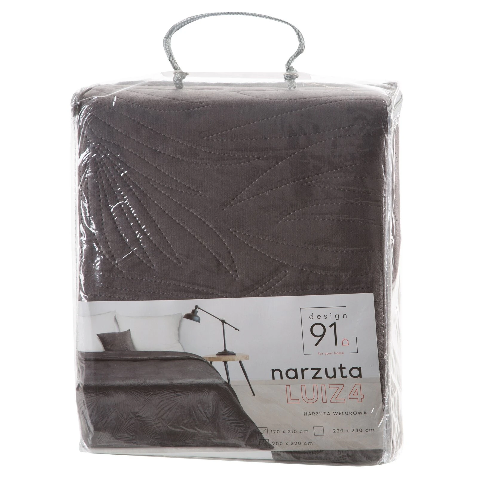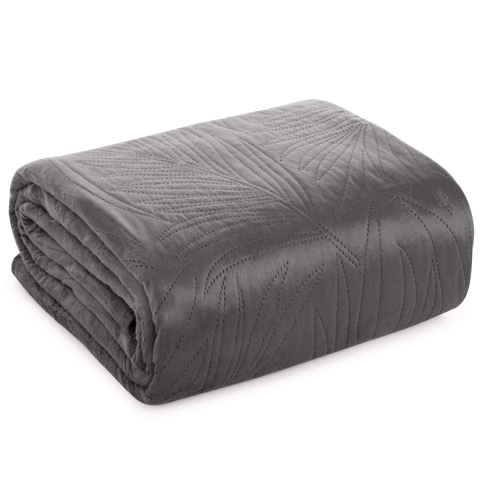 - Narzuta welurowa,wykonana metodą hot press szerokość: 170 cm, długość: 210 cm, kolor: grafitowy, Gramatura: 150+100+65 GSM, Skład: 100% poliester