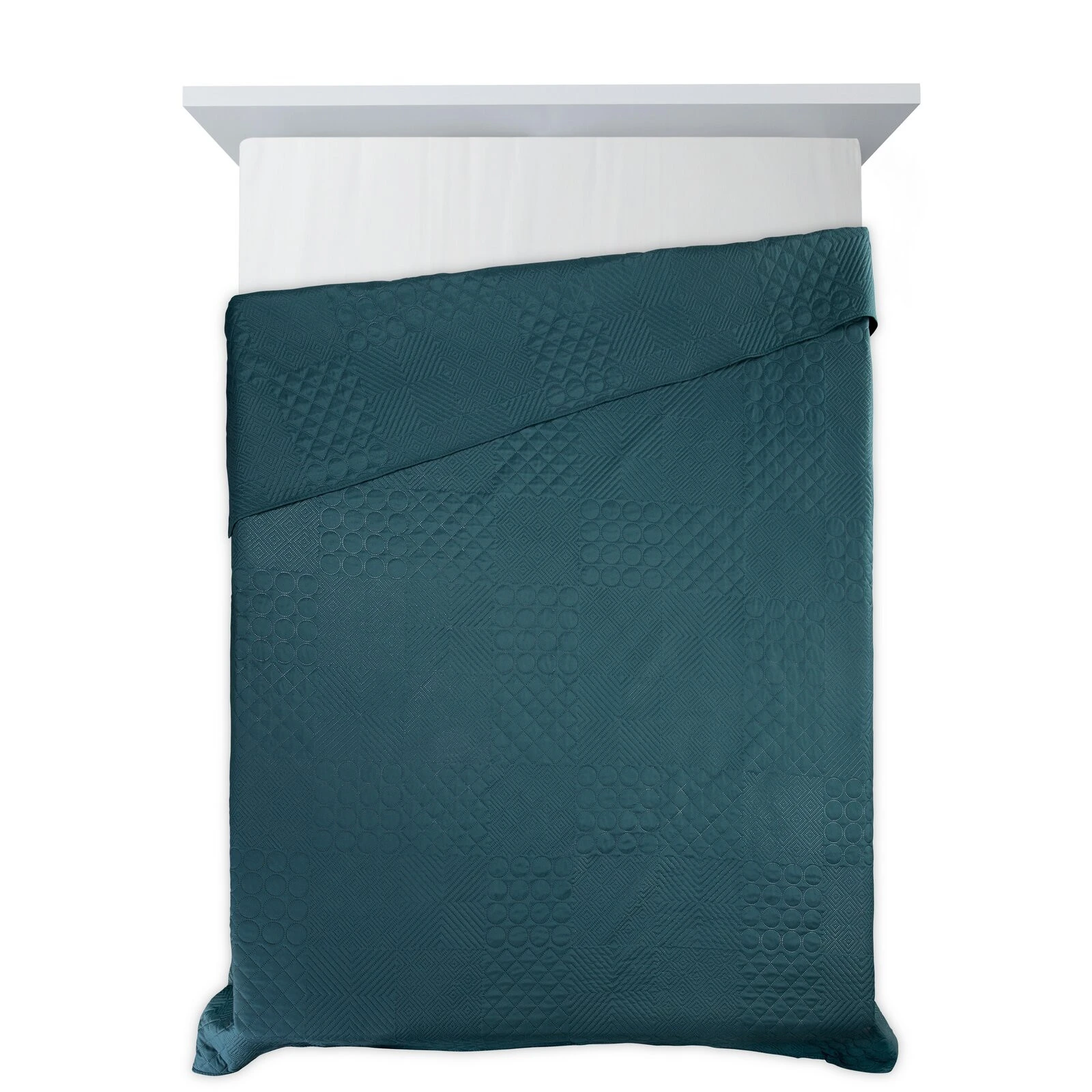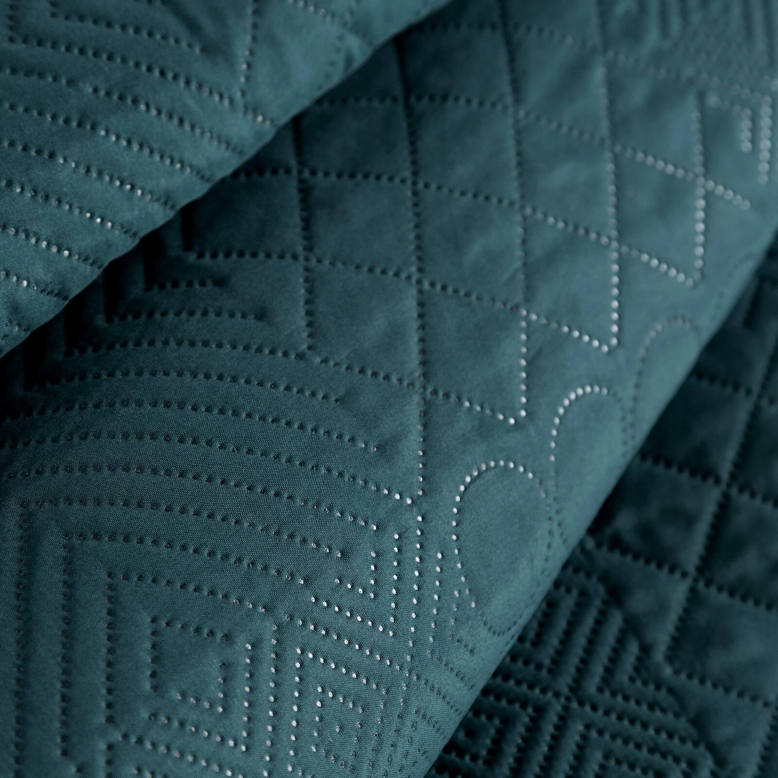 - Narzuta jednokolorowa, wykonana techniką hot press szerokość: 170 cm, długość: 210 cm, kolor: ciemnoturkusowy, Gramatura: 70+120+70 GSM, Skład: 100% poliester