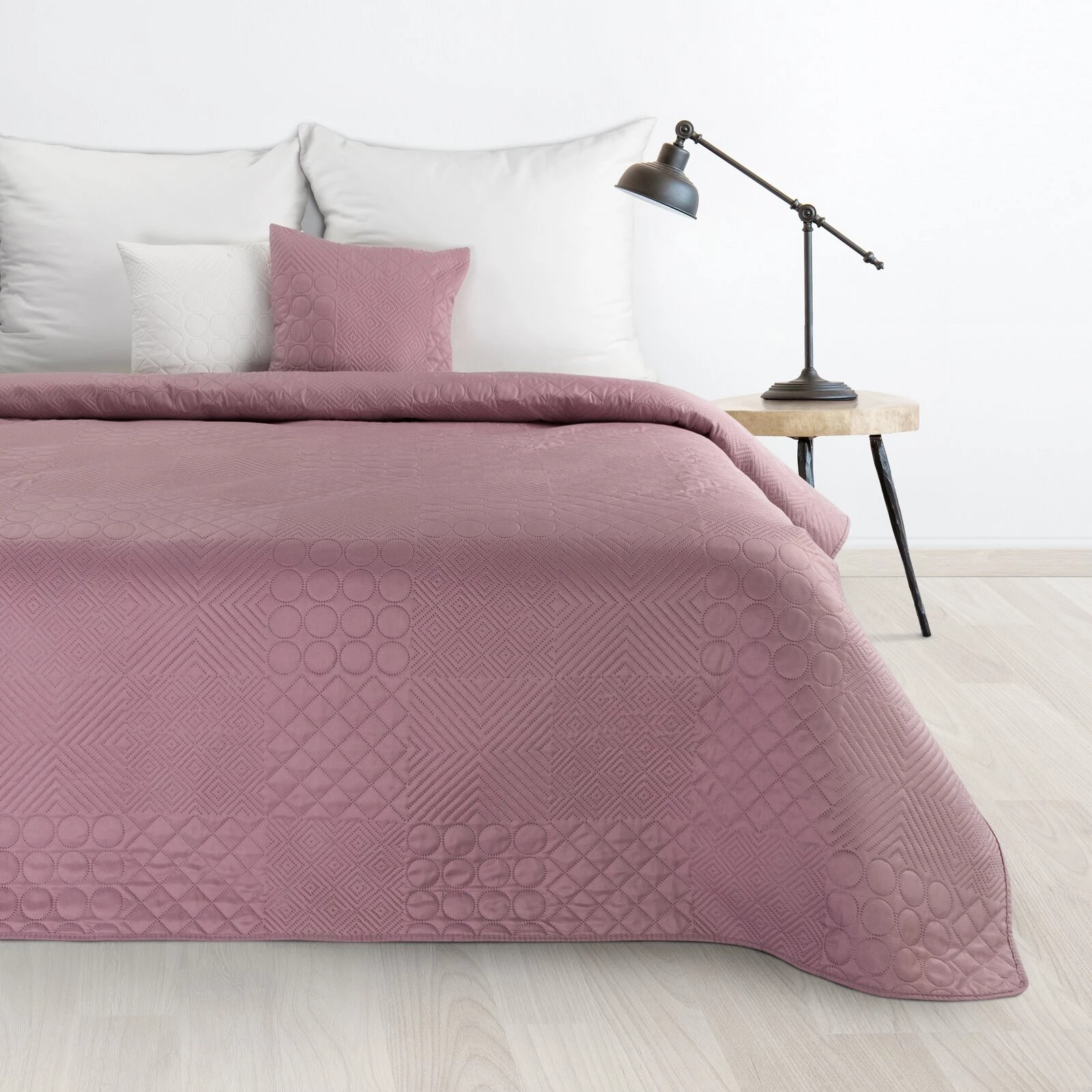 Narzuta jednokolorowa, wykonana techniką hot press szerokość: 170 cm, długość: 210 cm, kolor: różowy, Gramatura: 70+120+70 GSM, Skład: 100% poliester