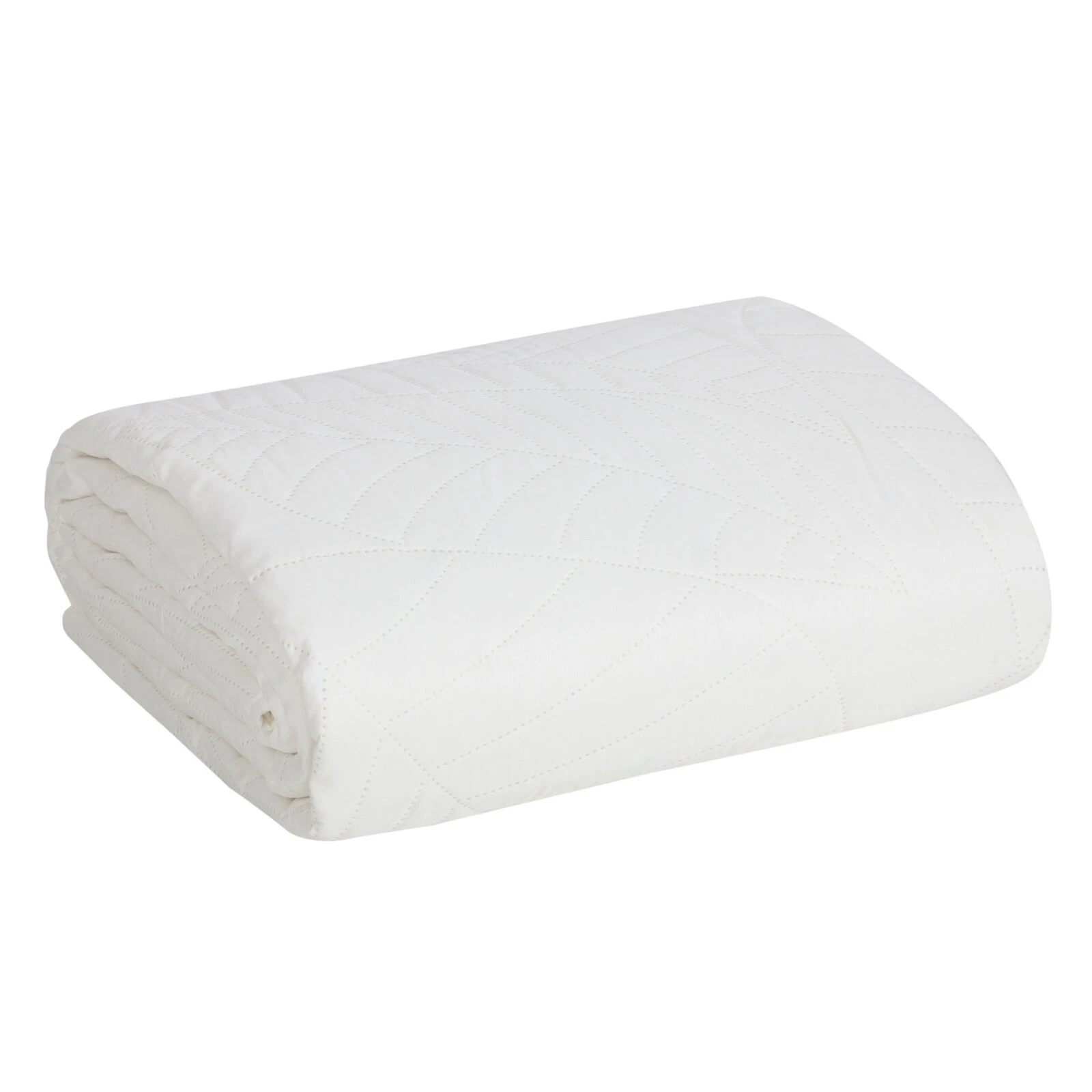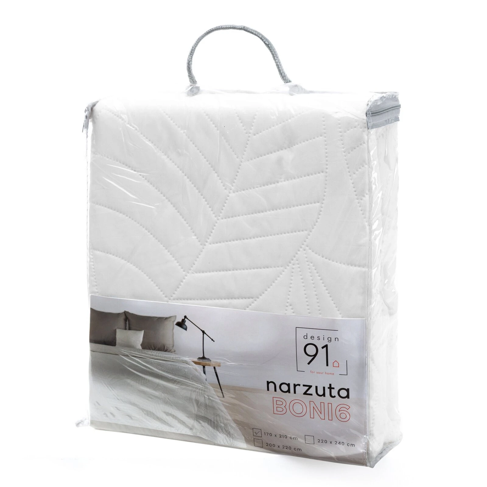 Narzuta jednokolorowa, wykonana techniką hot press szerokość: 170 cm, długość: 210 cm, kolor: biały, Gramatura: 70+120+70 GSM, Skład: 100% poliester