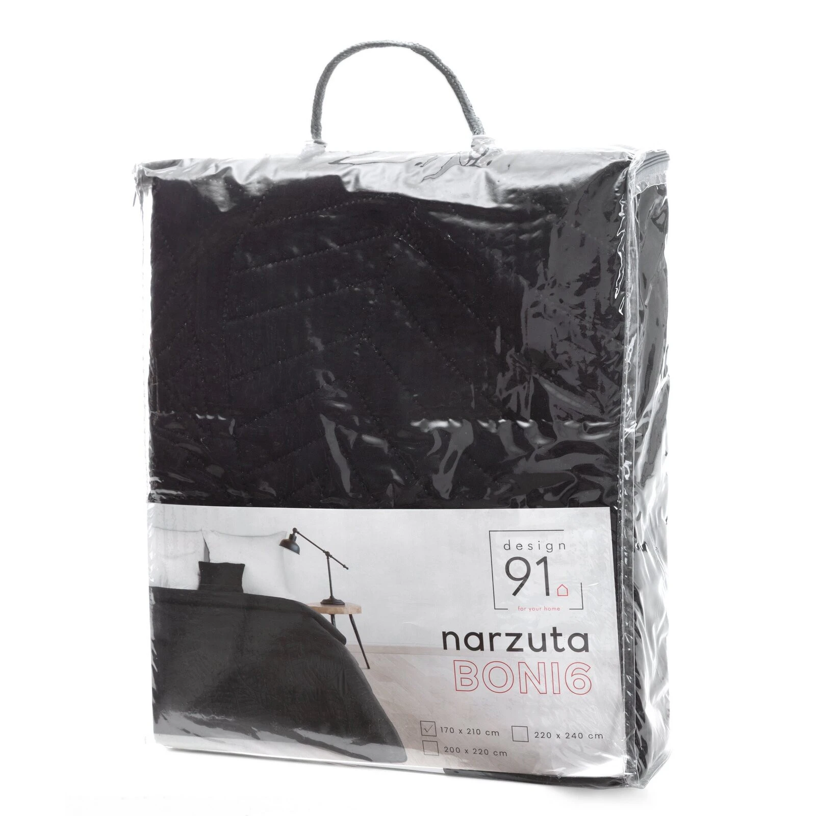 Narzuta jednokolorowa, wykonana techniką hot press szerokość: 170 cm, długość: 210 cm, kolor: czarny, Gramatura: 70+120+70 GSM, Skład: 100% poliester