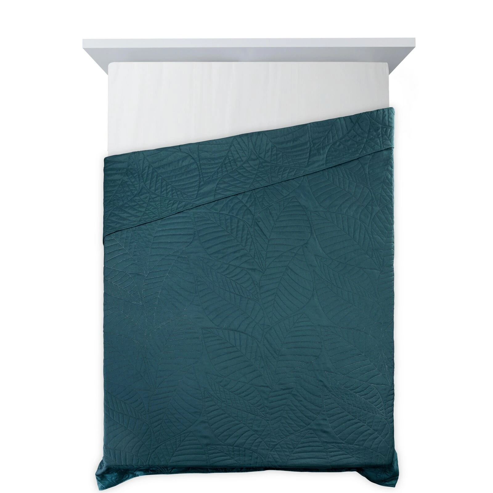 Narzuta jednokolorowa, wykonana techniką hot press szerokość: 170 cm, długość: 210 cm, kolor: ciemnoturkusowy, Gramatura: 70+120+70 GSM, Skład: 100% poliester