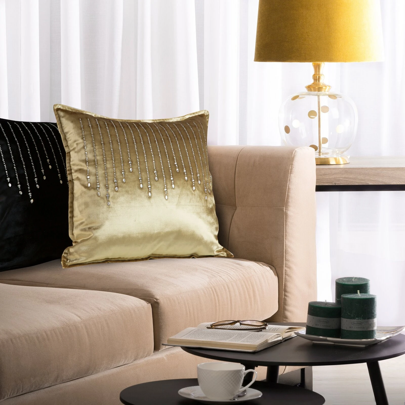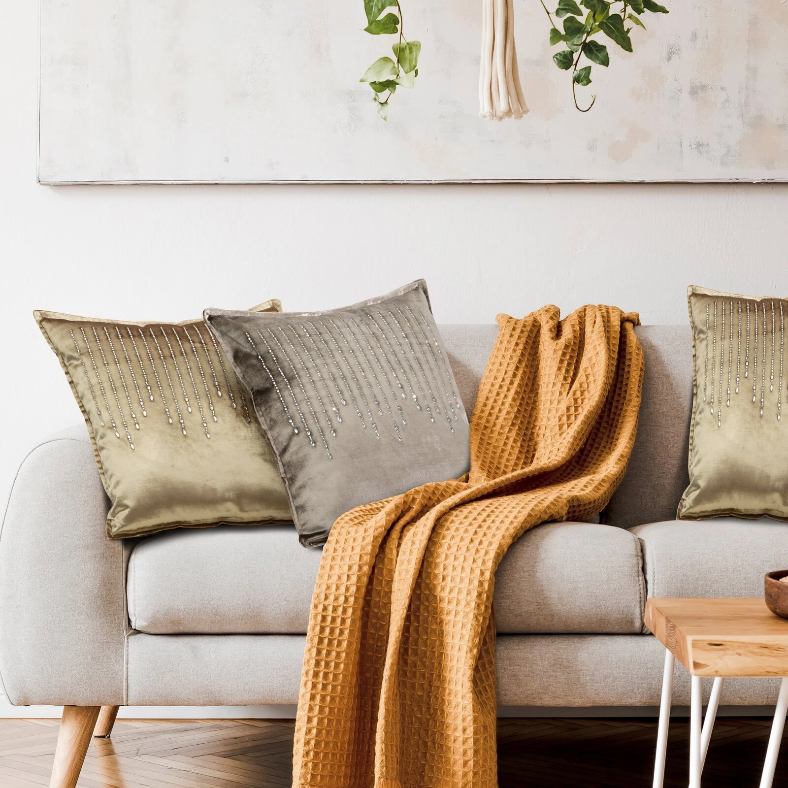 - Poszewka velvetowa z kryształkami szerokość: 45 cm, długość: 45 cm, kolor: niebieski, Gramatura: 340 GSM GSM, Skład: 100% poliester