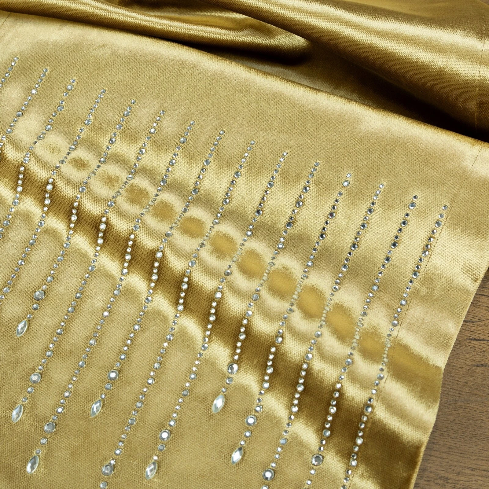 - Szarfa velvetowa z zdobiona kryształkami szerokość: 35 cm, długość: 220 cm, kolor: złoty, Gramatura: 340 GSM, Skład: 100% poliester