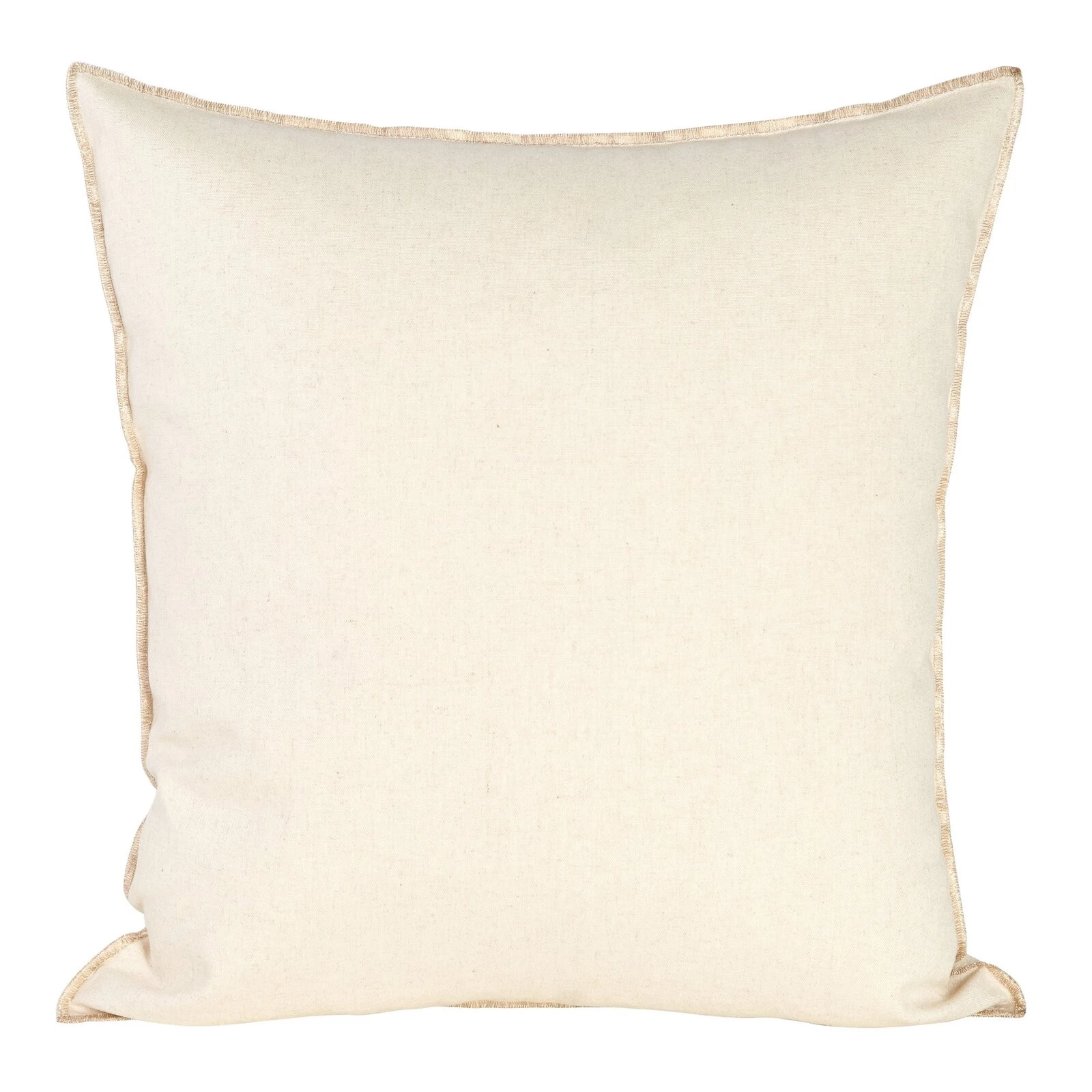 Poszewka lniana obszyta złotą nicią szerokość: 45 cm, długość: 45 cm, kolor: kremowy, Gramatura: 150 GSM, Skład: 50% poliester, 15% len, 35% bawełna