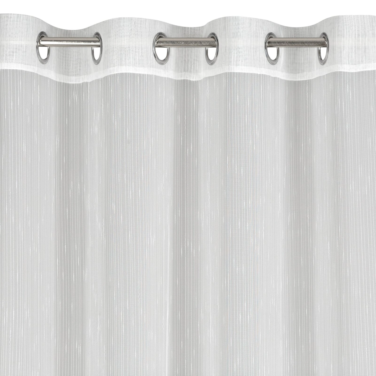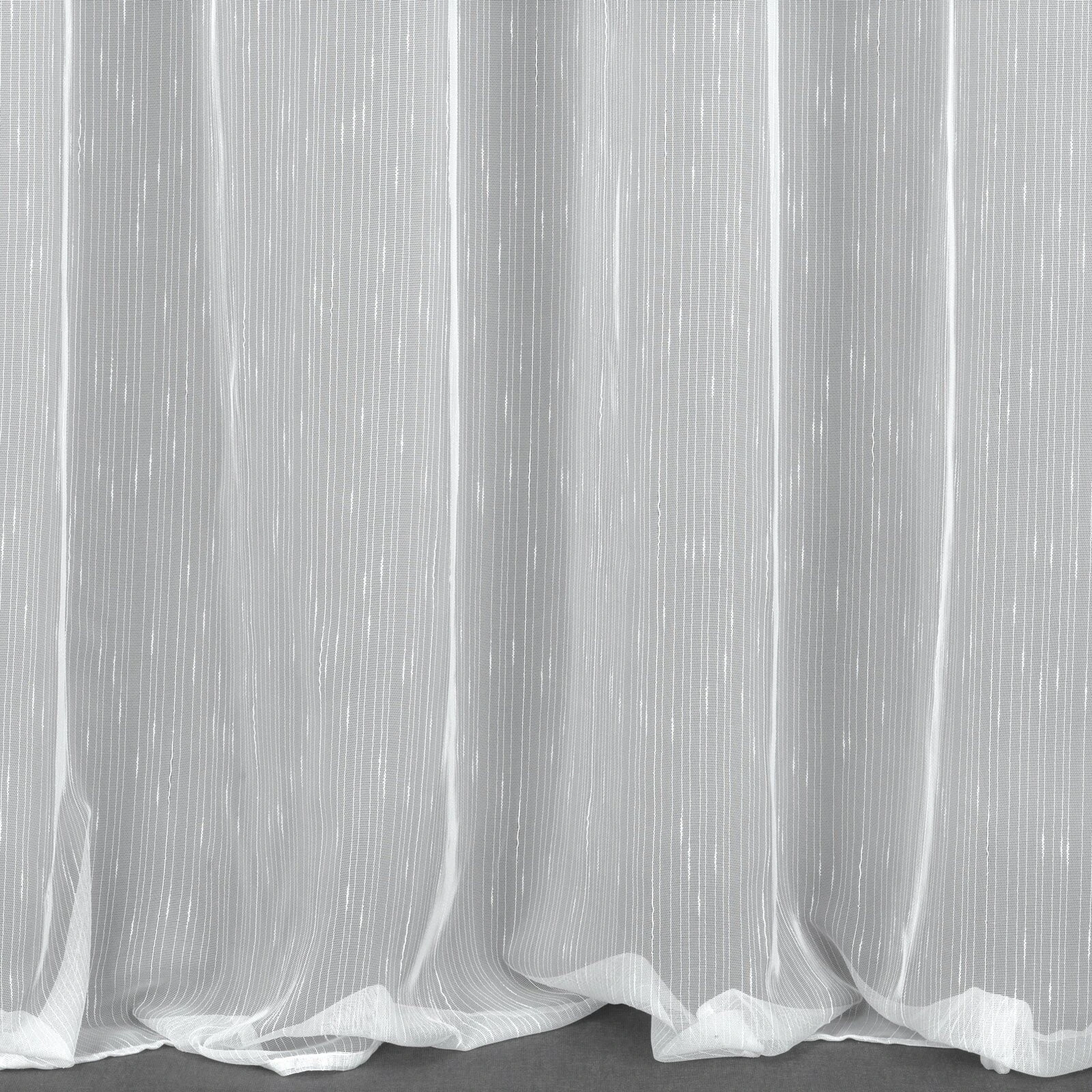 Delikatna firana w pięknym kolorze uszyta z tkaniny o strukturze drobnego deszczyku doskonale przepuszcza światło. Łatwa w prasowaniu i praniu dekoracja. szerokość: 350 cm, długość: 250 cm, kolor: biały, Gramatura: 50 GSM, Skład: 100% poliester