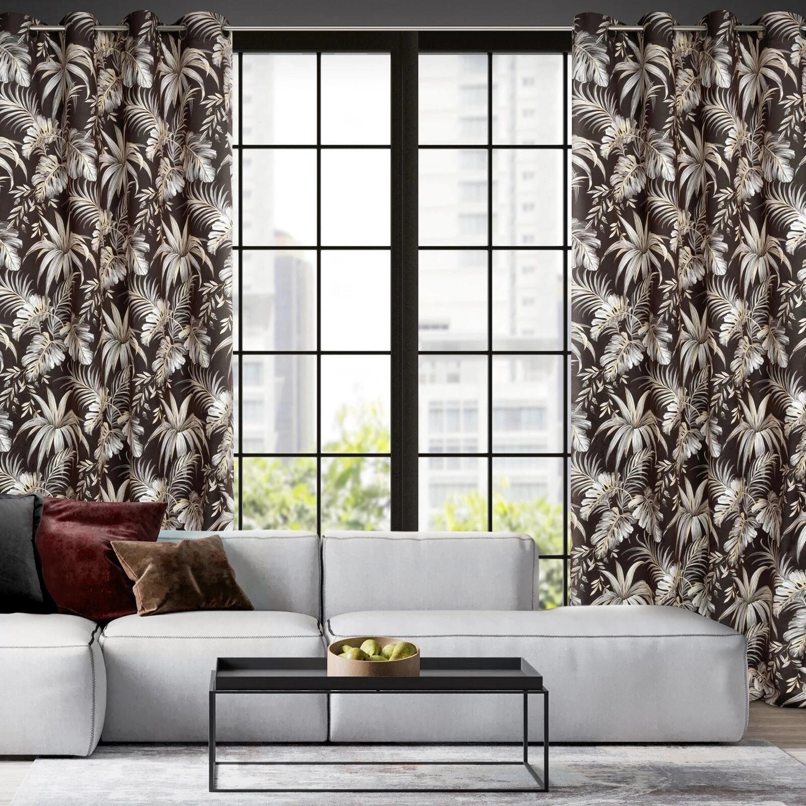 Zasłona welwetowa z nadrukiem szerokość: 140 cm, długość: 250 cm, kolor: czarny, Gramatura: 200 GSM, Skład: 100% poliester
