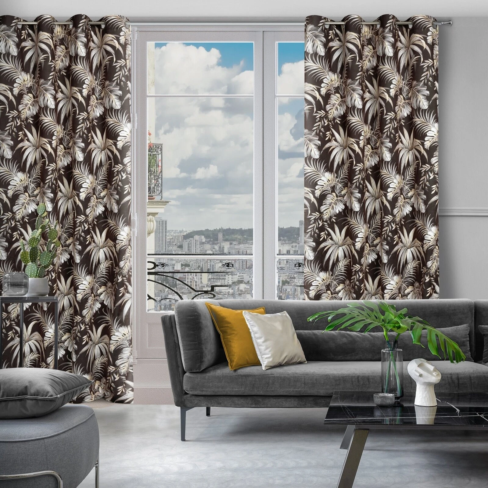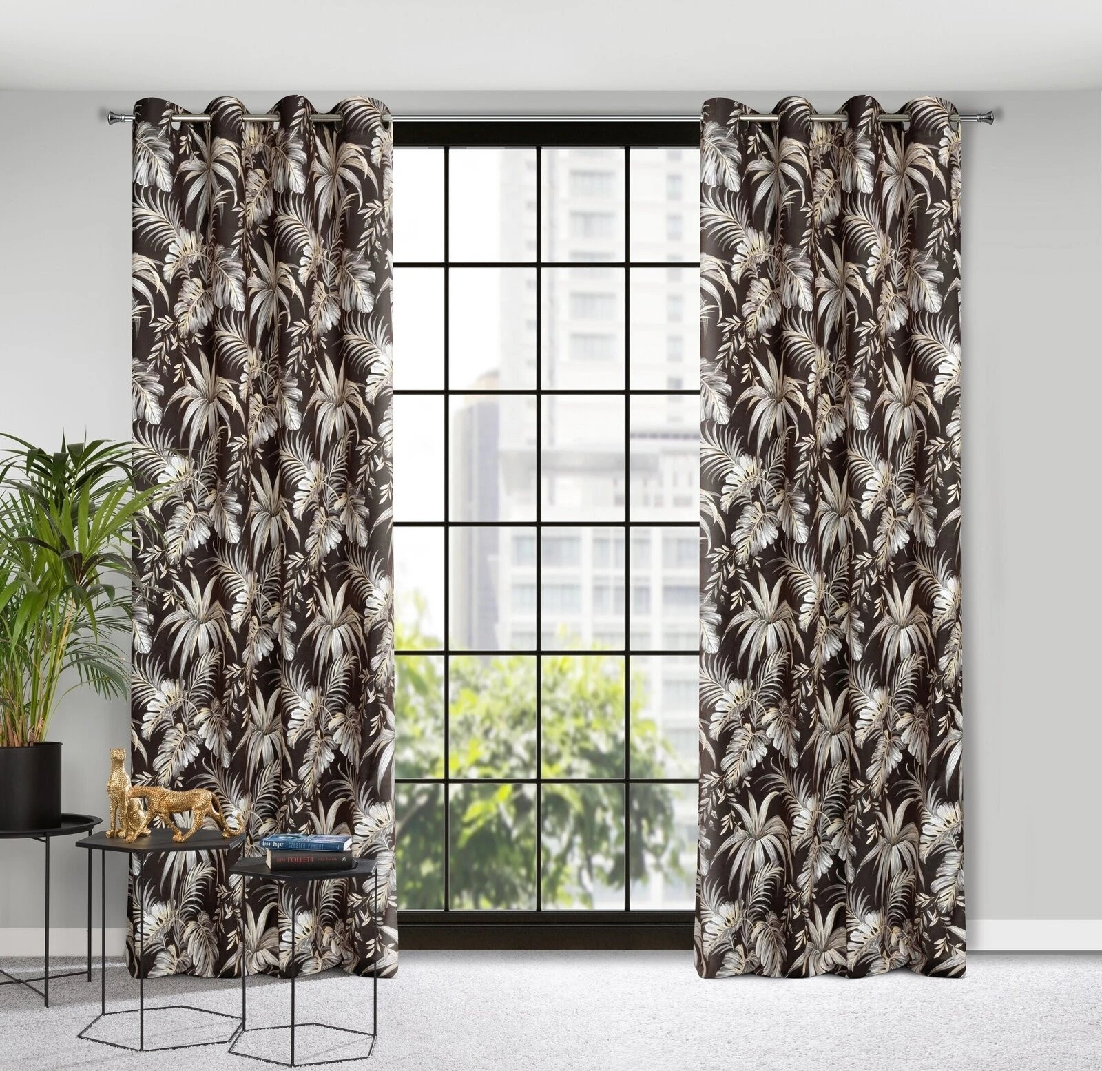 - Zasłona welwetowa z nadrukiem szerokość: 140 cm, długość: 250 cm, kolor: czarny, Gramatura: 200 GSM, Skład: 100% poliester