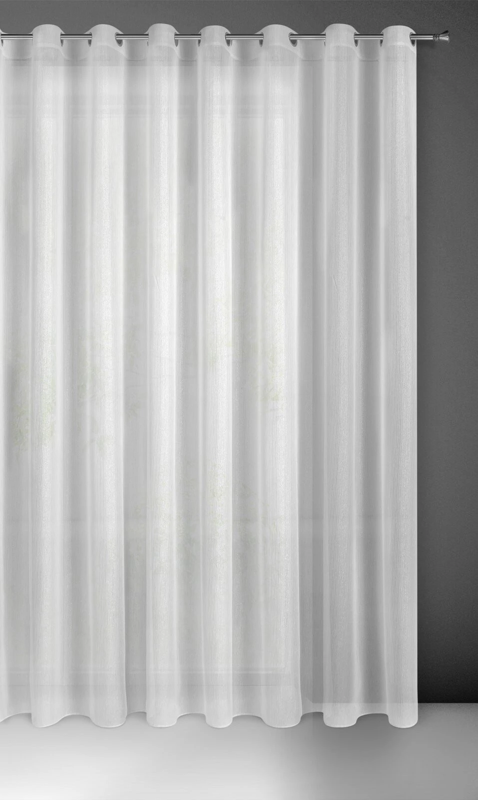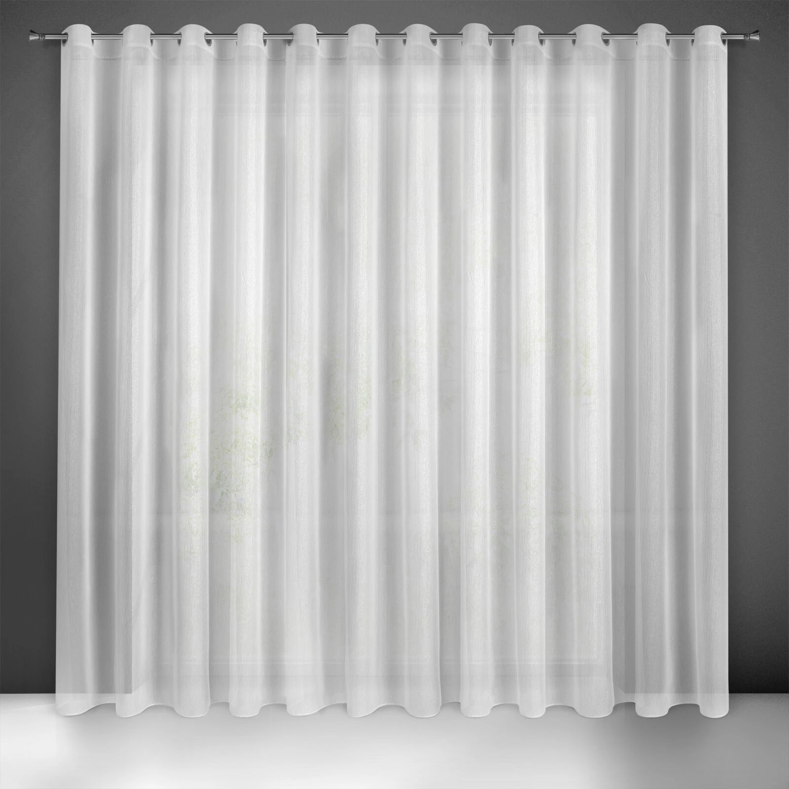 Półprzejrzysta, zwiewna zasłona jednokolorowa z dodatkiem lureksu o lśniącej powierzchni. Uniwersalna dekoracja okienna do każdej aranżacji. Łatwa w prasowaniu. szerokość: 300 cm, długość: 250 cm, kolor: biały, Gramatura: 60 GSM, Skład: 100% poliester