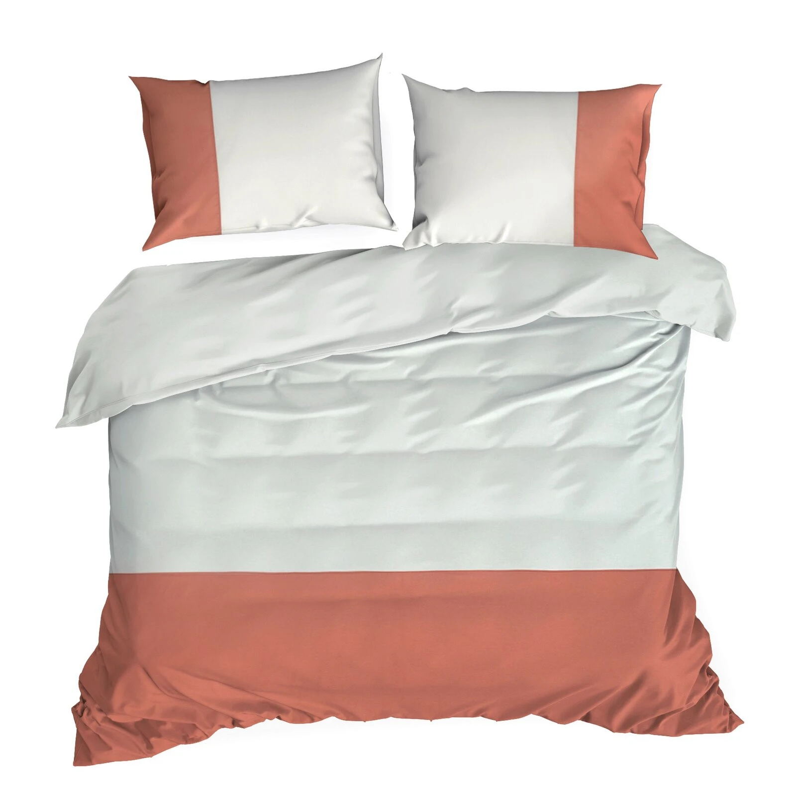 Dwukolorowa pościel bawełniana z ozdobną lamówką szerokość: 220 cm, długość: 200 cm, kolor: biały, Gramatura: 110 GSM, Skład: 100% bawełna