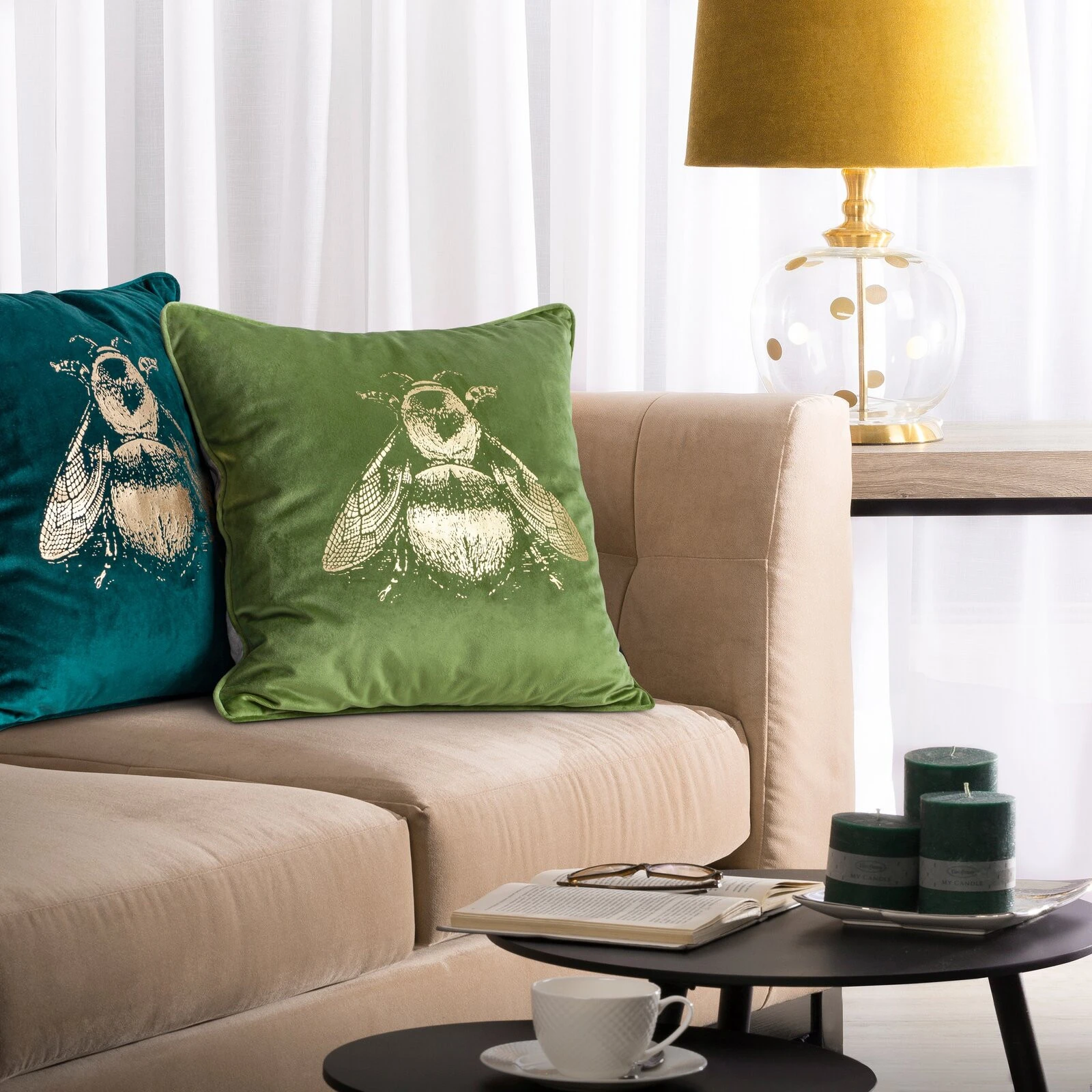 - Poszewka dekoracyjna dwustronna welwet z nadrukiem i len szerokość: 45 cm, długość: 45 cm, kolor: turkusowy, Gramatura: 250 GSM, Skład: 100% poliester