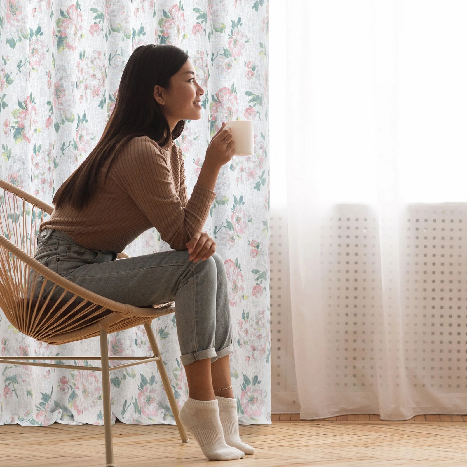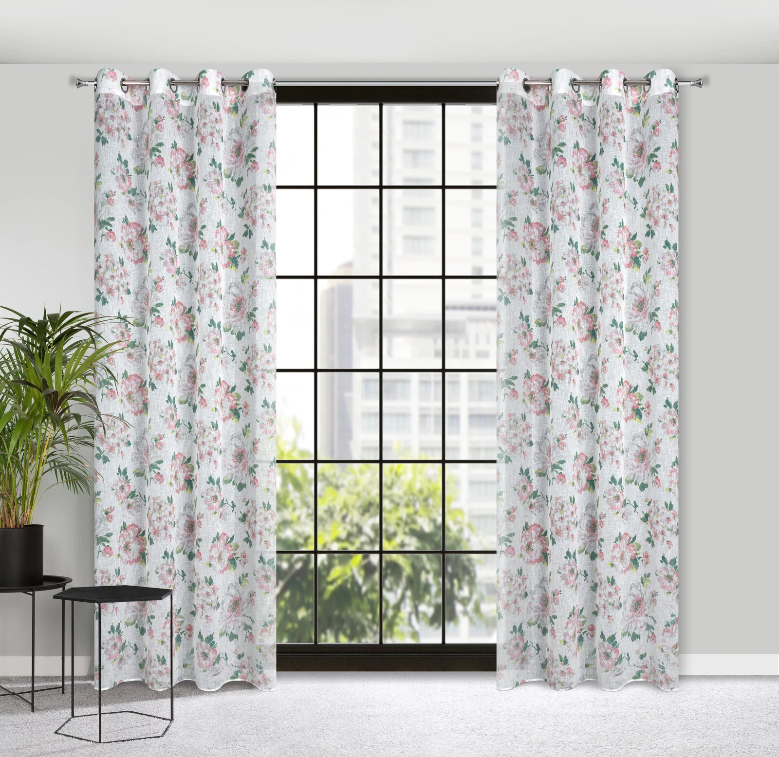 - Klasyczna zasłona z tkaniny o strukturze płótna zdobiona pastelowym nadrukiem kwiatów ogrodowych. Średni stopień zaciemnienia. Tkanina łatwa w prasowaniu. szerokość: 140 cm, długość: 250 cm, kolor: biały, Gramatura: 110 GSM, Skład: 100% poliester